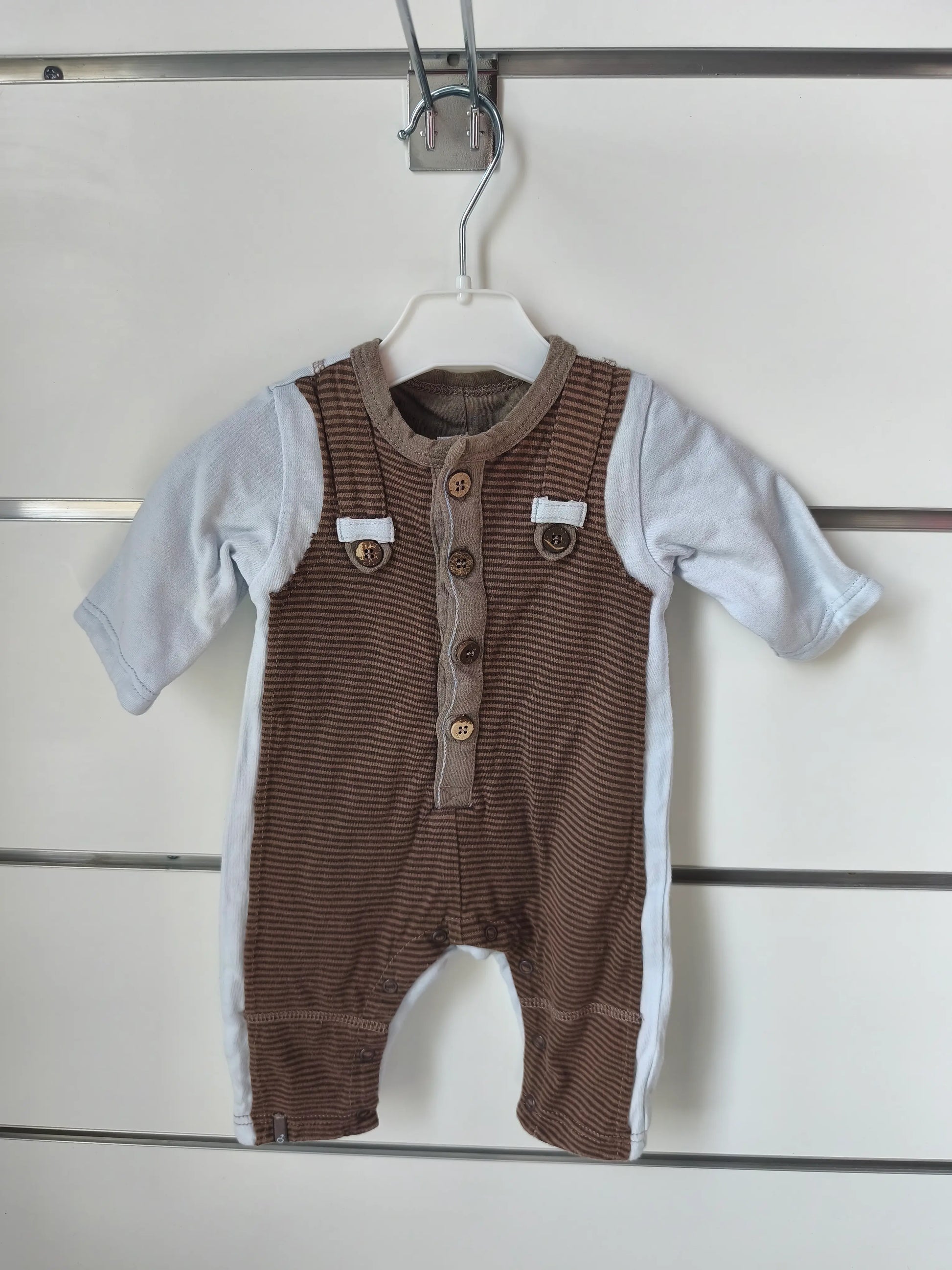 Barboteuse Marron et Bleu Sans Pied – 1 mois