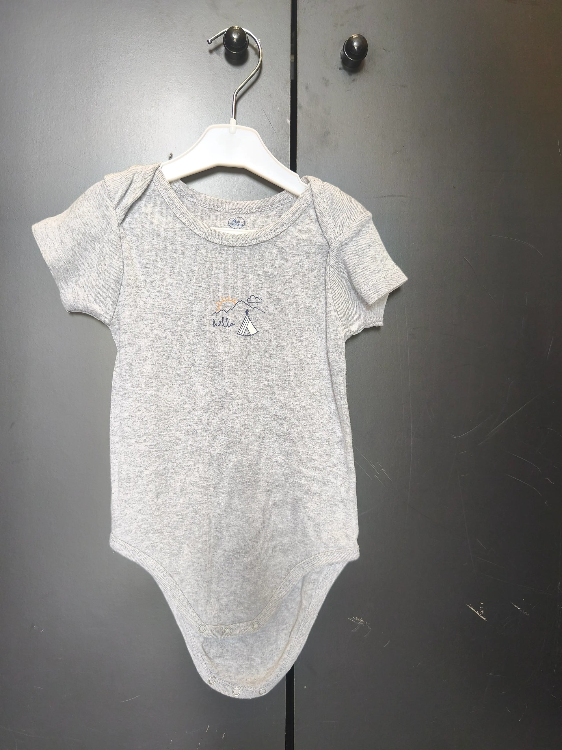 Body Mots d’Enfants 24 mois - Gris "Hello" & tipi, manches courtes, 100% coton ref 30