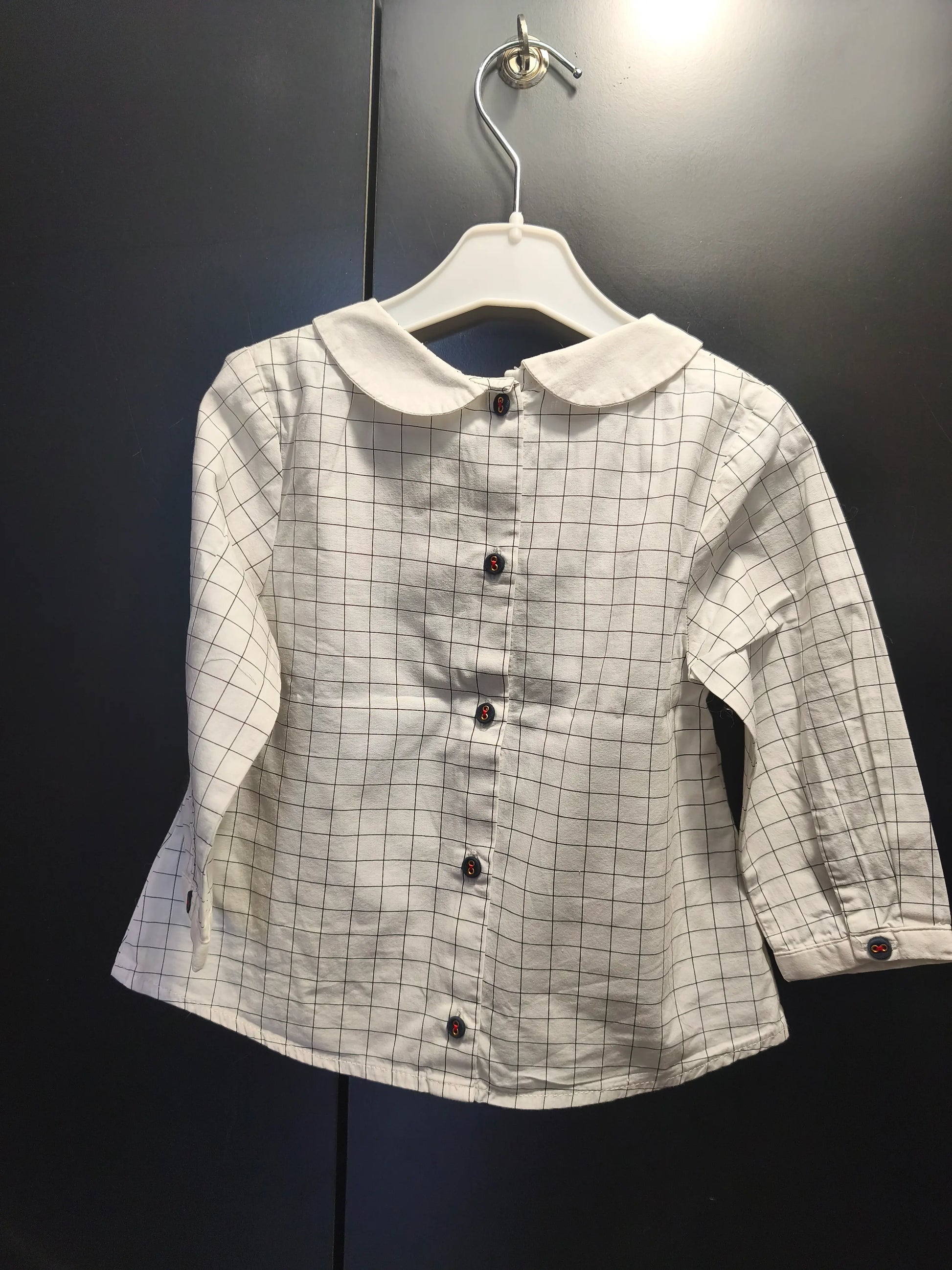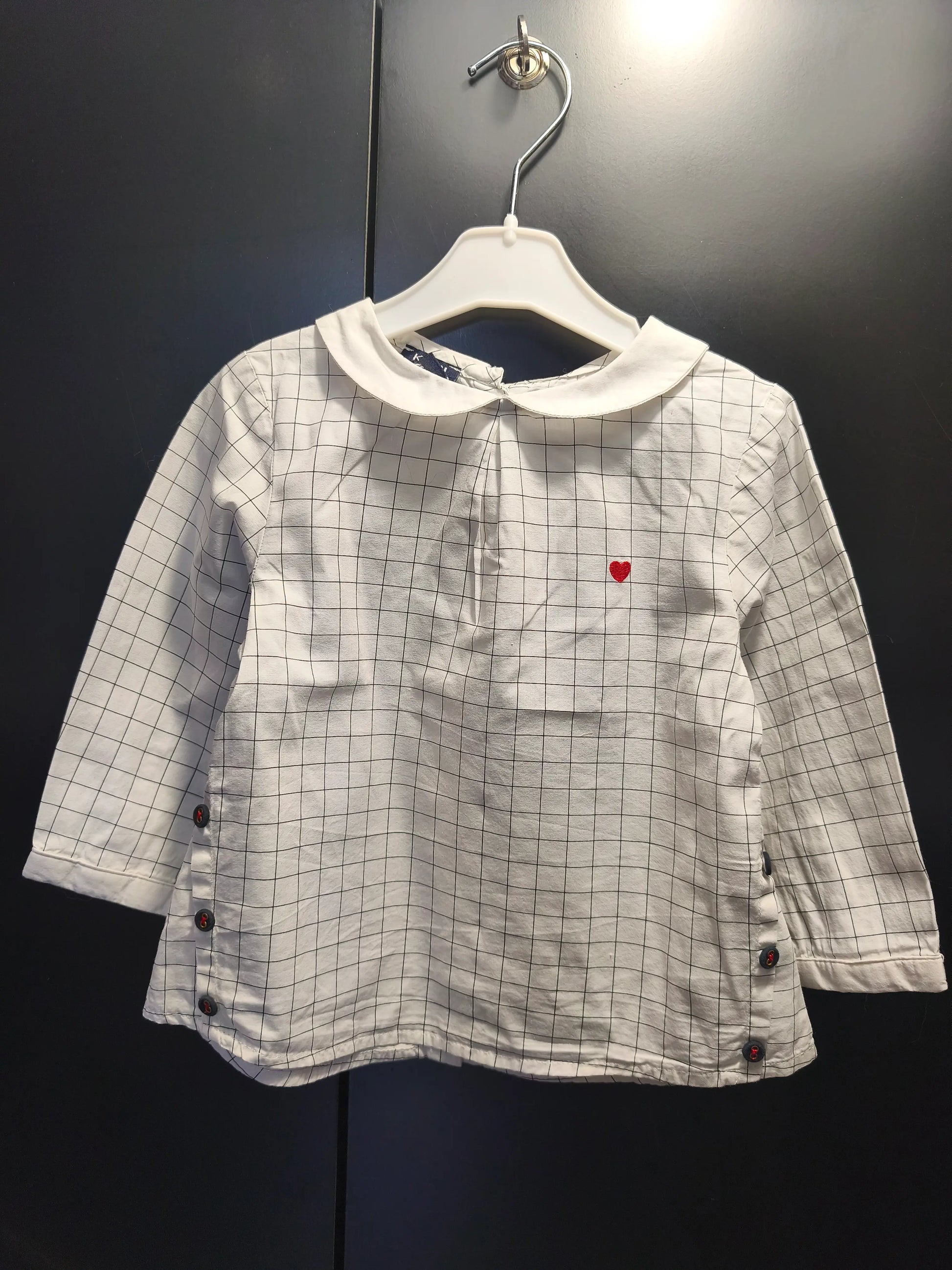 Chemisette blanche à carreaux noirs et cœur brodé – Kiabi 18 mois ref 346