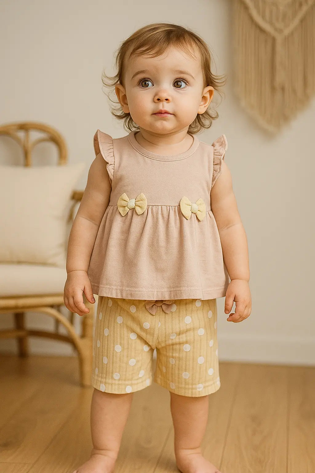 Offrez à votre bébé fille un look tendance et confortable avec ce magnifique ensemble 3 pièces beige ! Parfait pour la mi-saison et les journées ensoleillées, cet ensemble allie douceur, élégance et praticité.