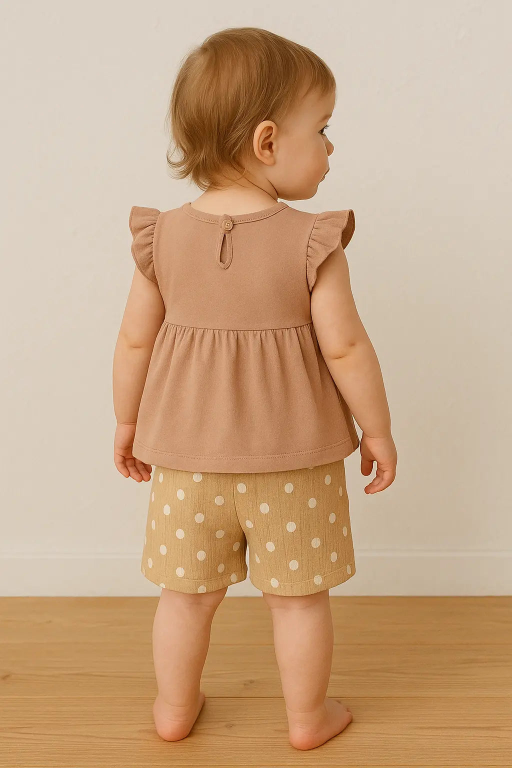 Ensemble Beige – T-shirt Volants, Short à Pois ref 427759