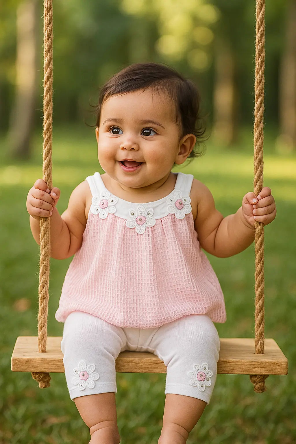Offrez à votre bébé fille une tenue élégante et agréable à porter avec cet ensemble 2 pièces, parfait pour le printemps et l’été. Il se compose de :
