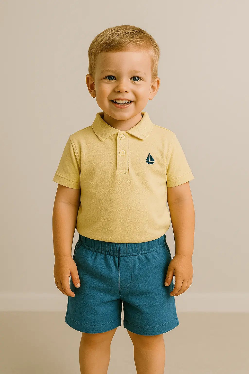 Ensemble été – Polo jaune "Marine" brodé & short bleu ref 427705