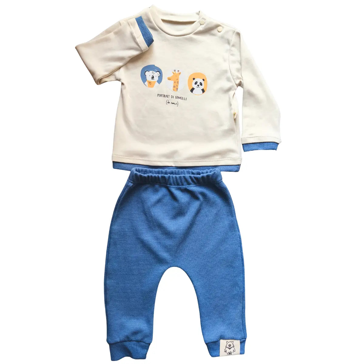 Ensemble bébé garçon 2 pièces – Douceur animale et confort de 0 à 12 mois