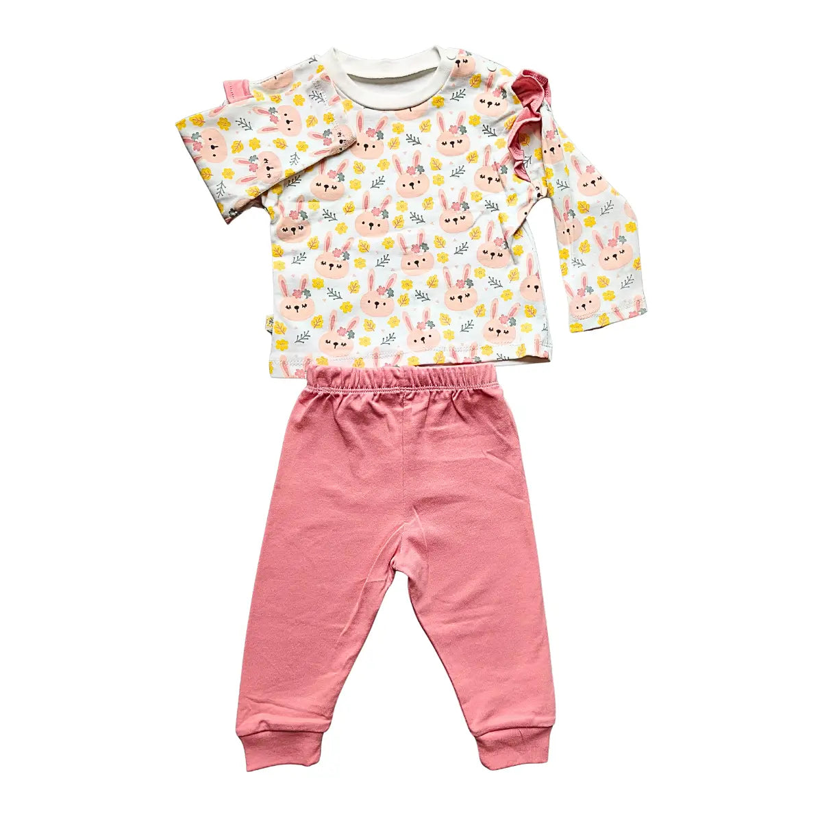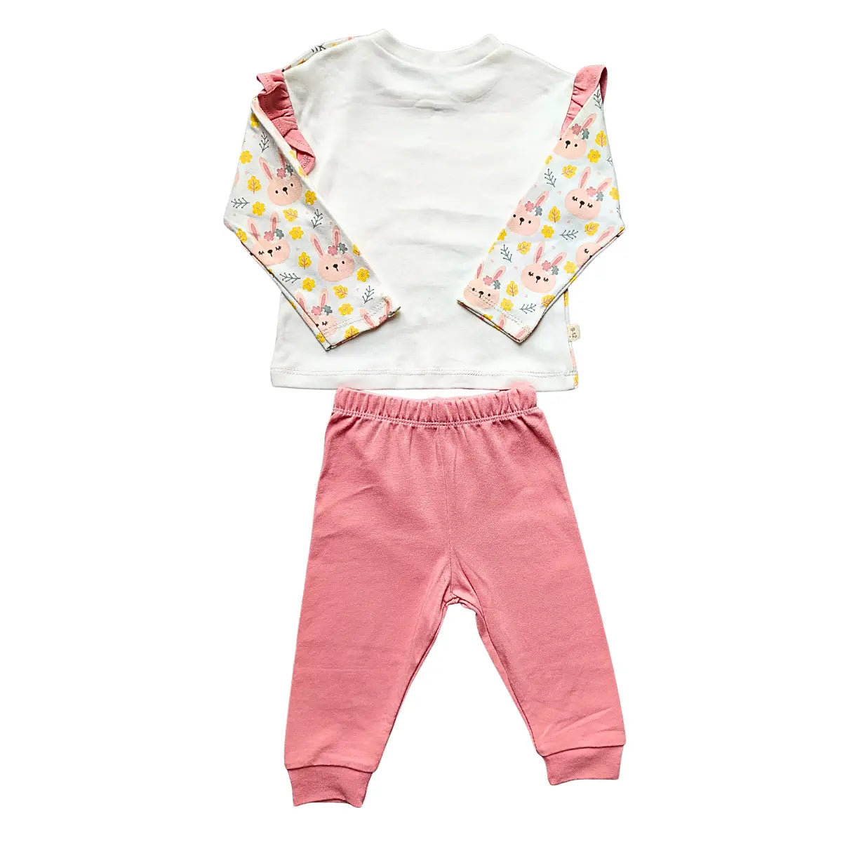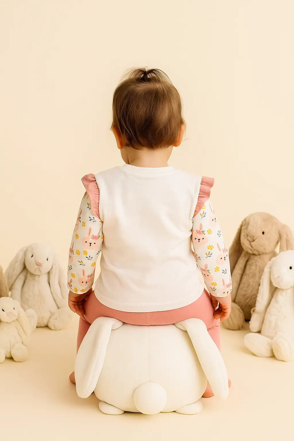 Ensemble fille blanc & corail – Lapin, feuillage et volants