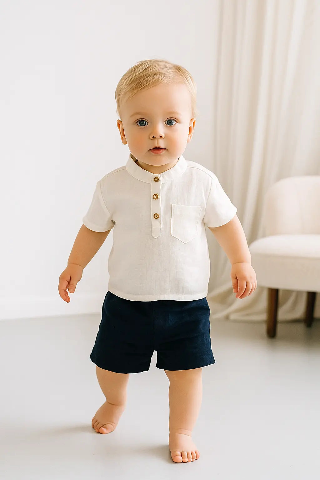 Offrez à votre petit garçon un look à la fois élégant et confortable avec notre ensemble bébé garçon en coton. Parfait pour les beaux jours, ce duo t-shirt + short est conçu pour allier praticité, douceur et style.