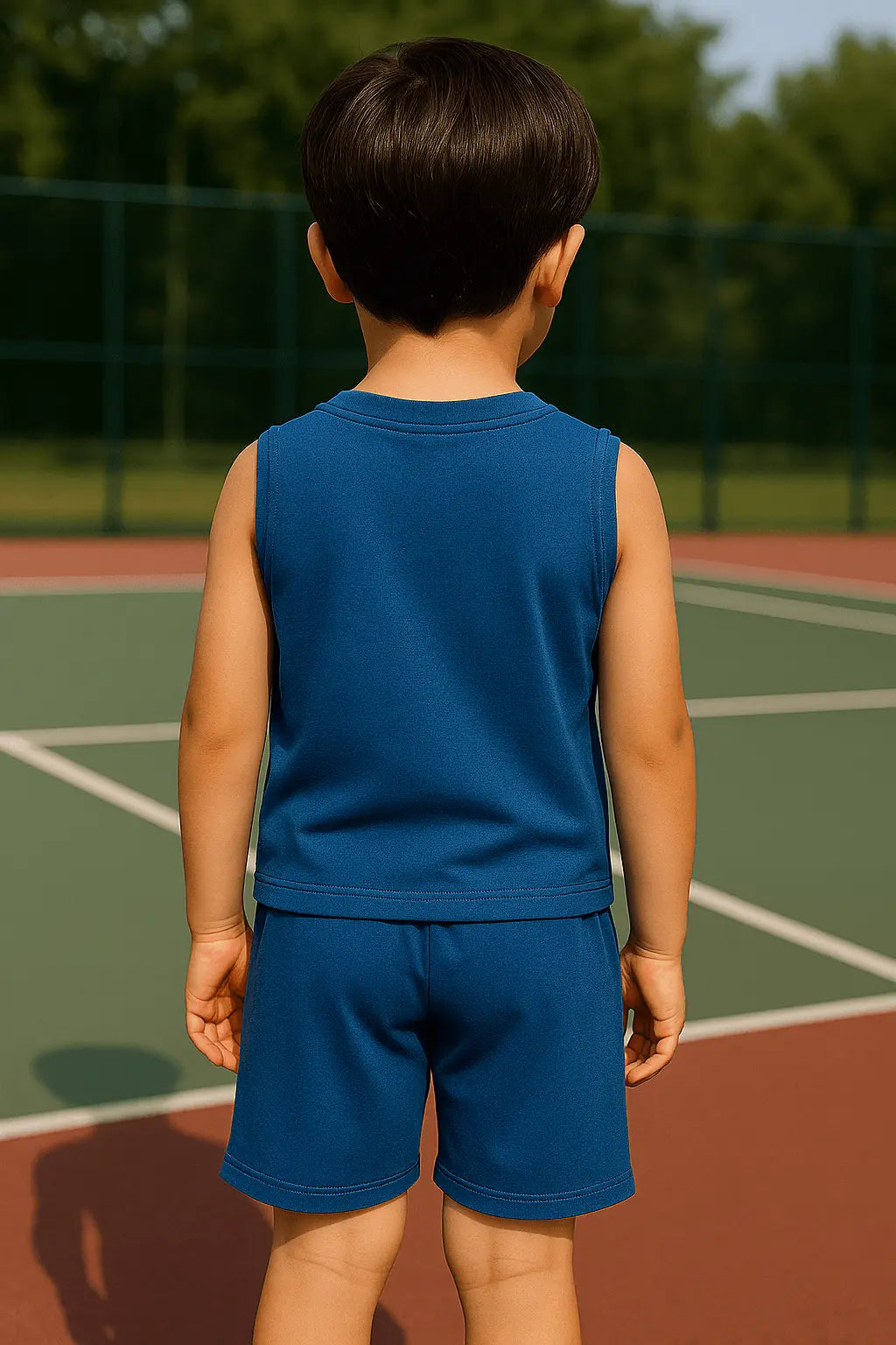 Craquez pour cet ensemble garçon t-shirt et short bleu marine, parfait pour un look décontracté et tendance cet été. Conçu dans une matière 100% coton, douce et respirante, cet ensemble est idéal pour accompagner votre enfant dans toutes ses aventures quotidiennes.