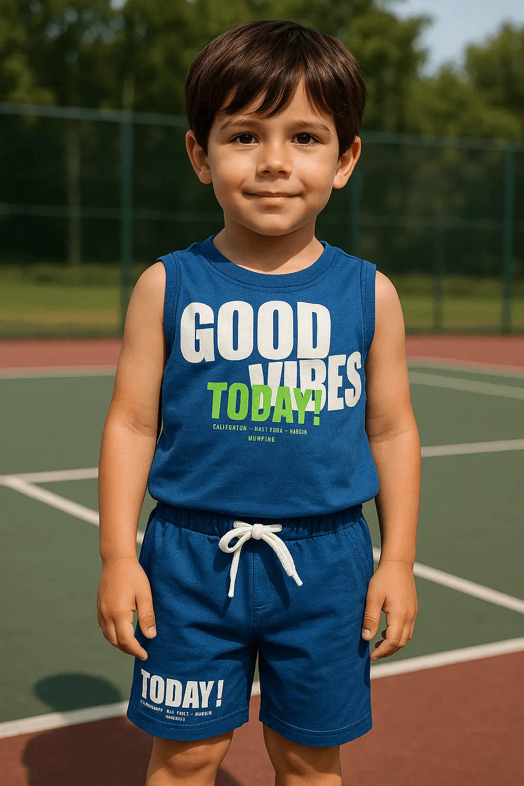 Ensemble t-shirt et short bleu marine – Motifs "Good Vibes" et "Today" ref 429551