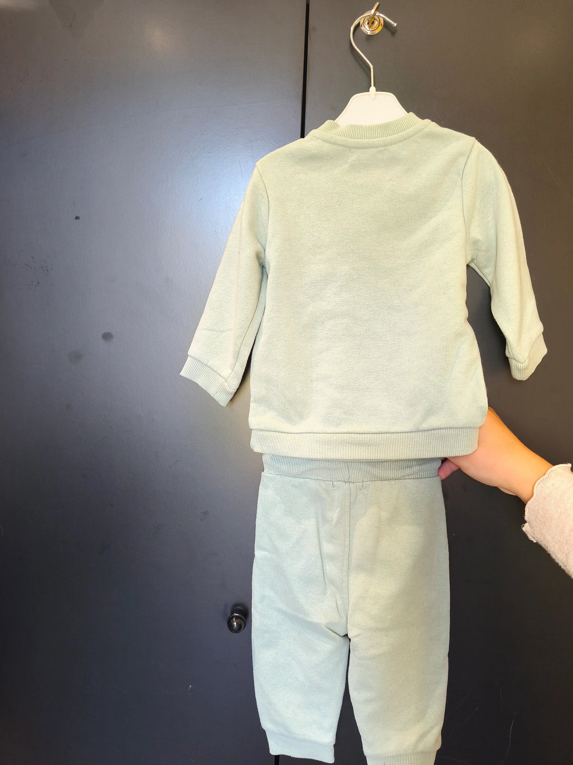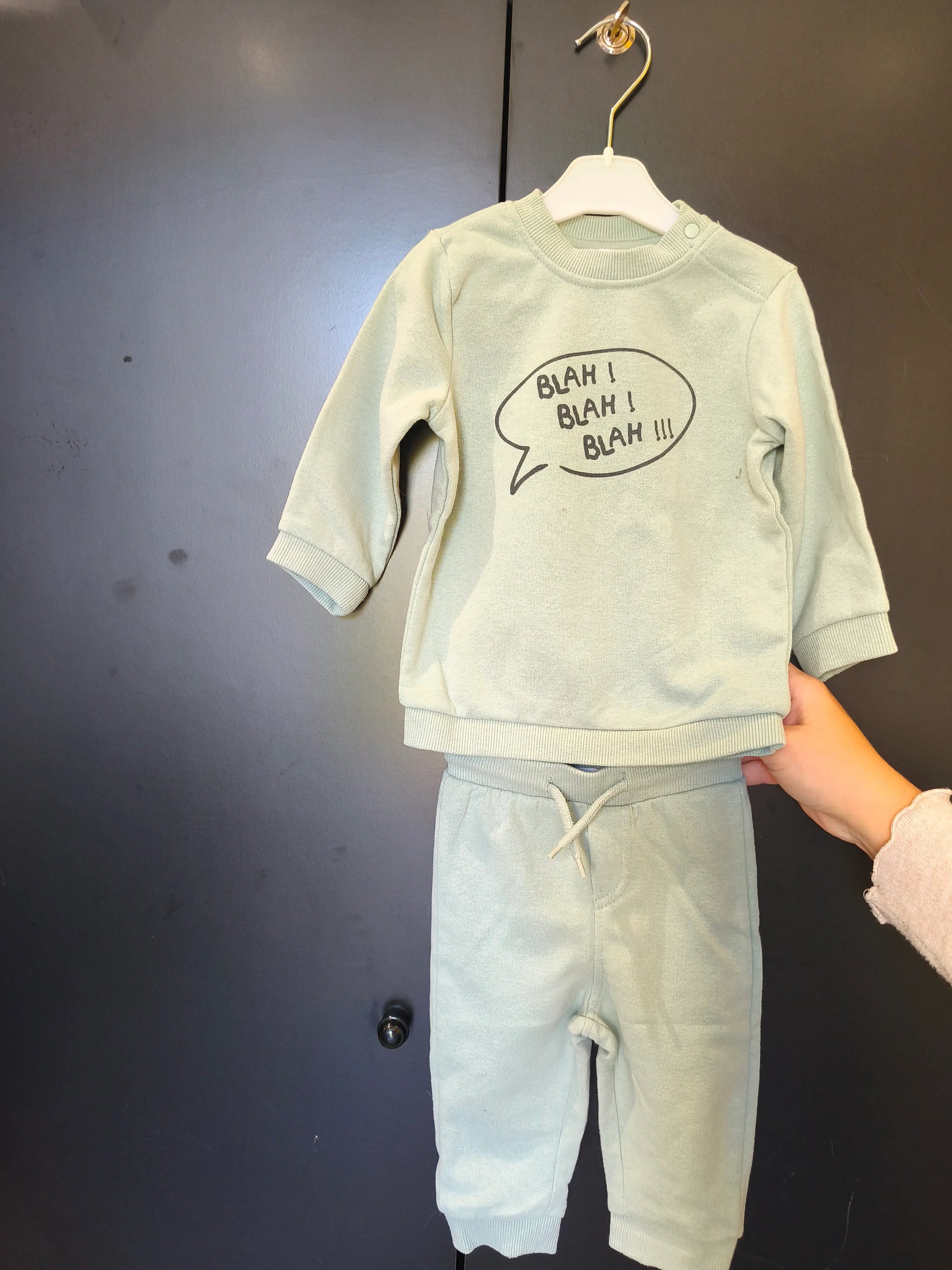 Ensemble survêtement – Vert d’eau “Blah Blah Blah” – 9 mois ref 246