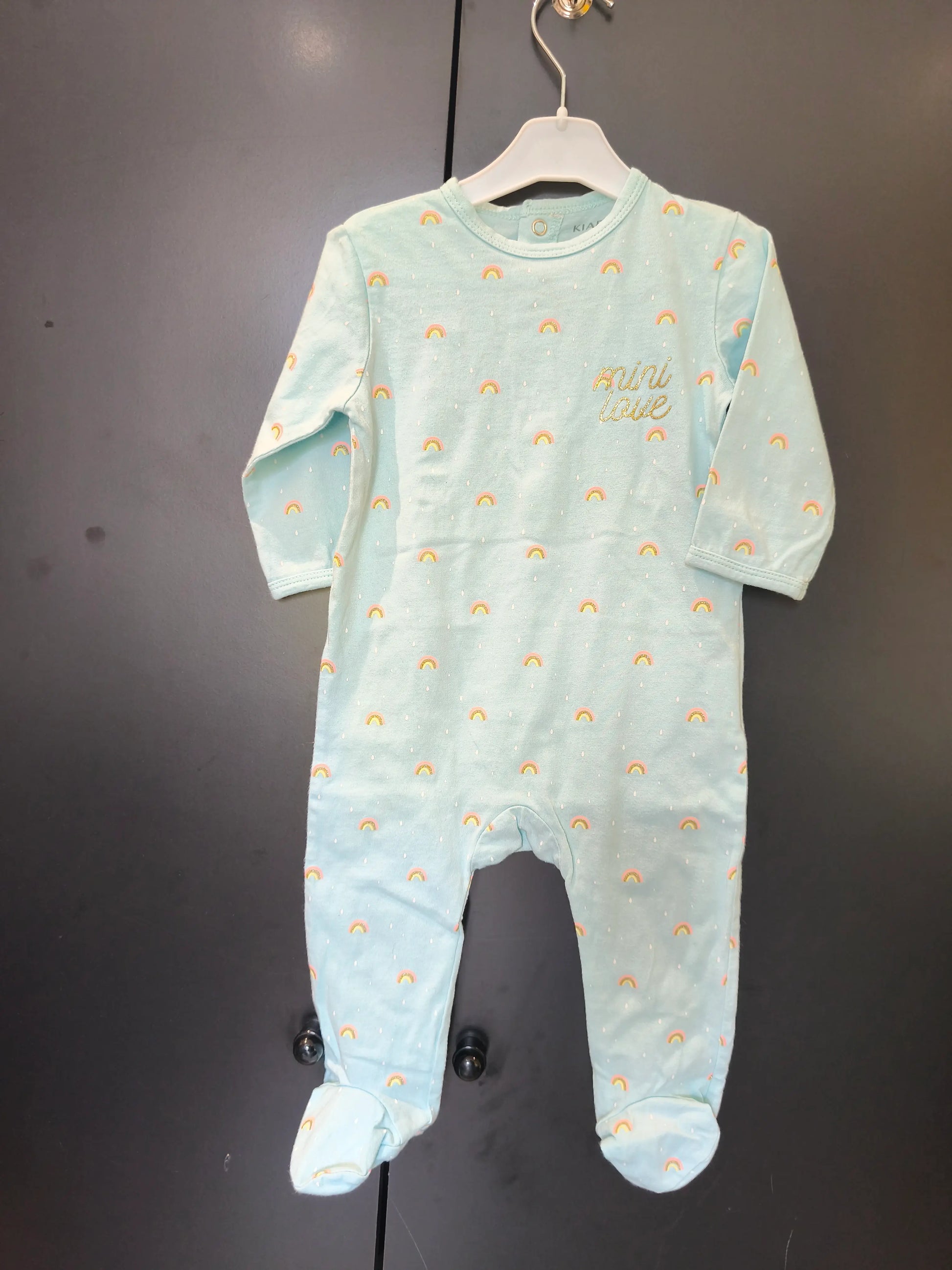 Grenouillère Bleu Vert "Mini Love" – Arc-en-ciel Doré – Kiabi – 12 Mois ref 316