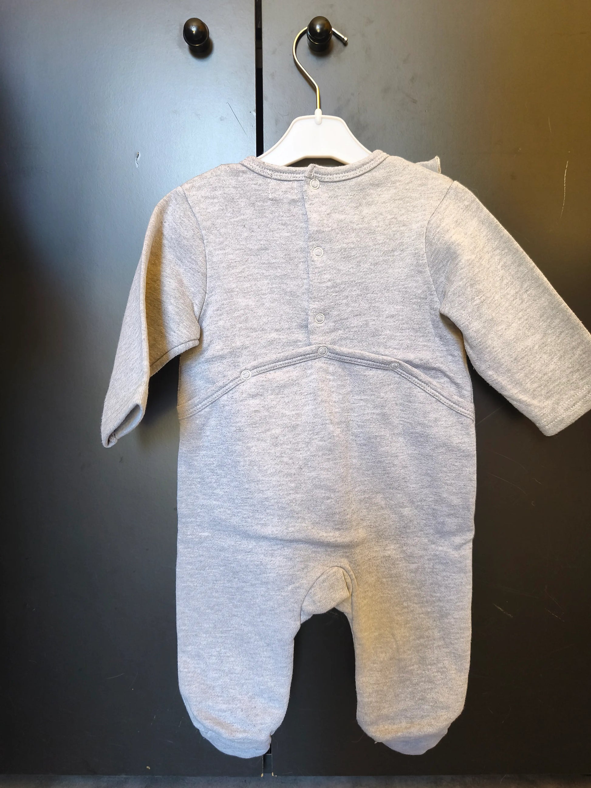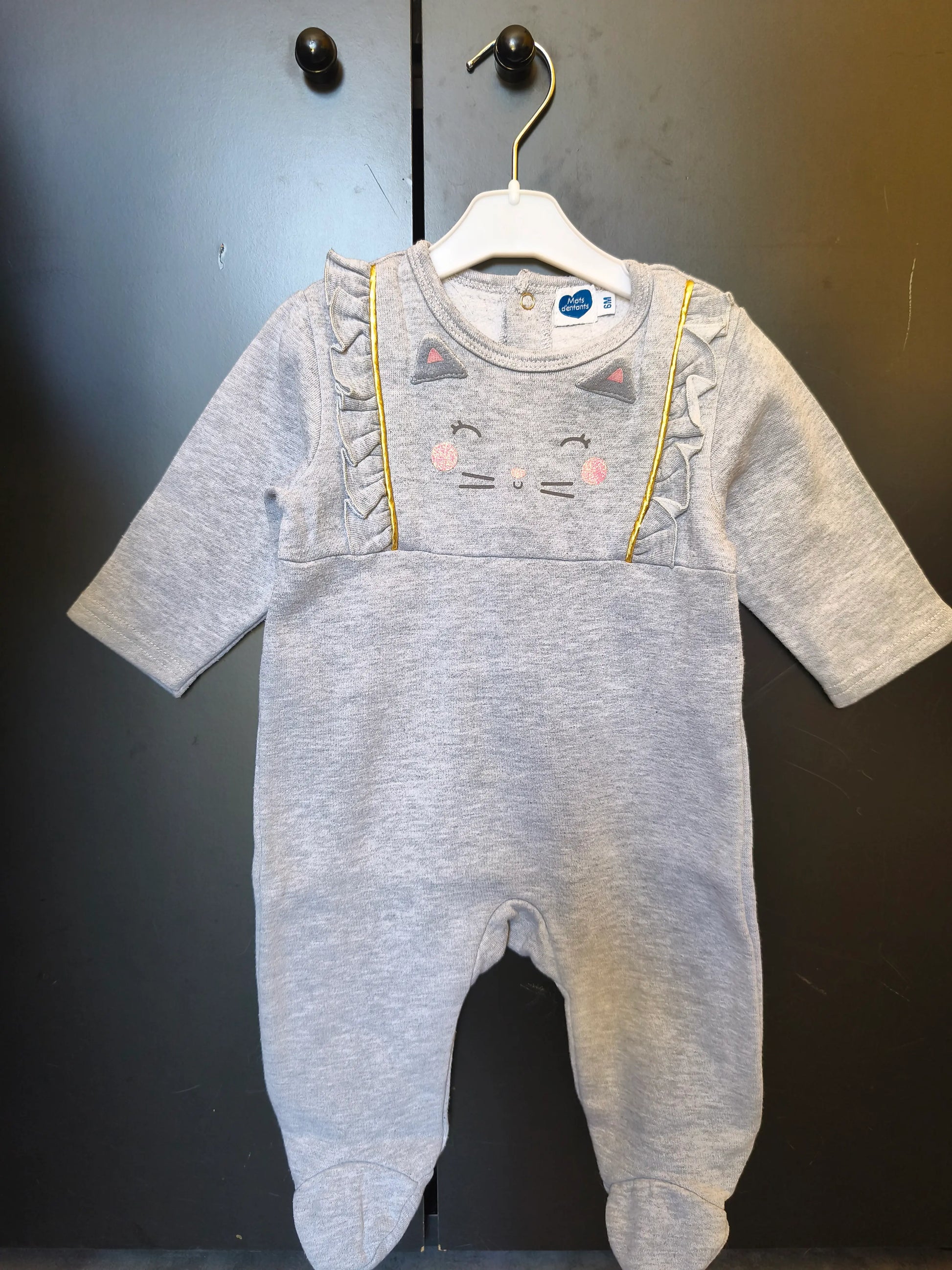 Grenouillère Grise Motif Chat et Liseré Doré – Mots d’Enfants – 6 Mois ref 226
