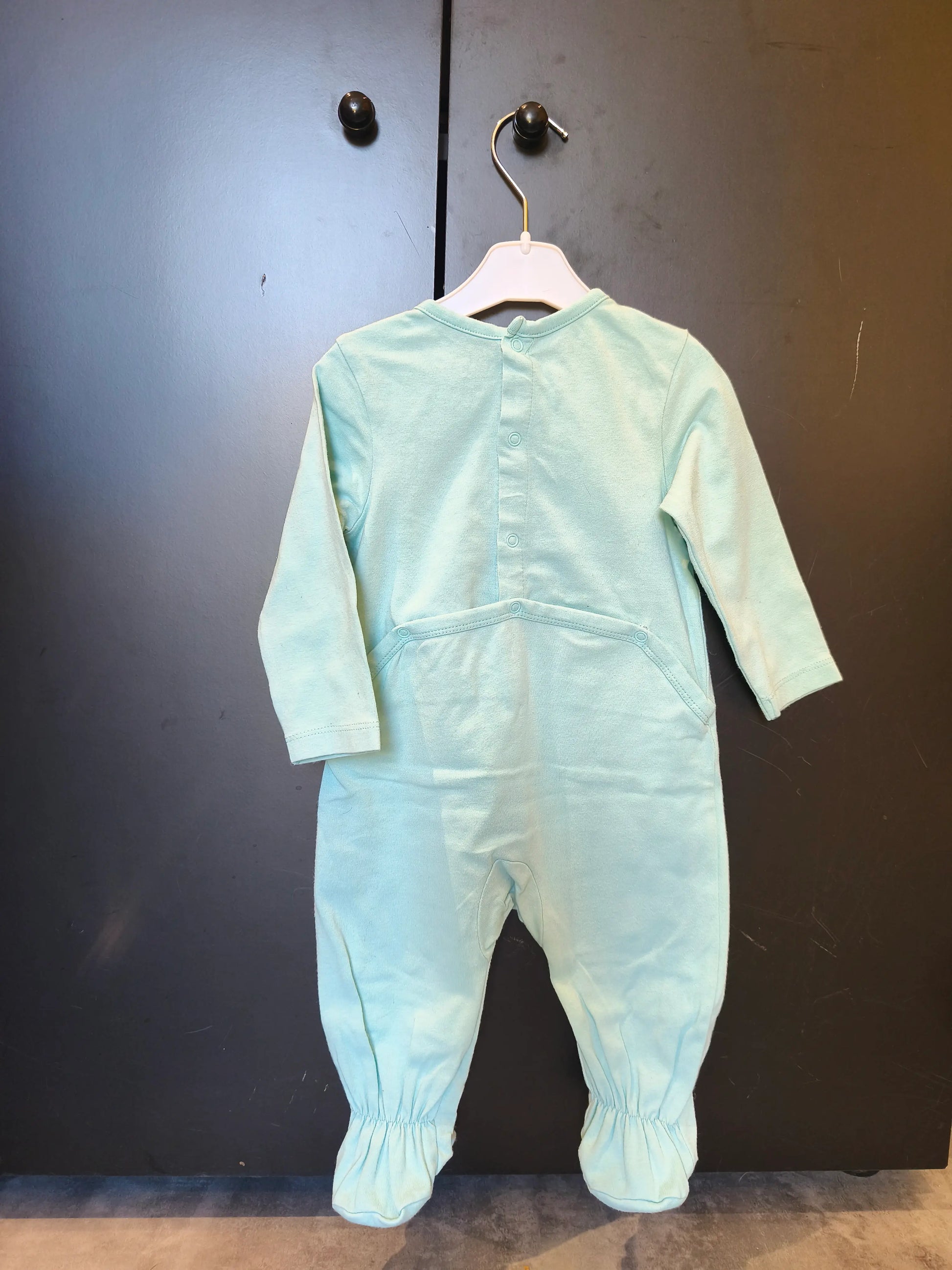 Grenouillère manches longues – Lion & décor tropical – Vert d’eau – 9 mois ref 254