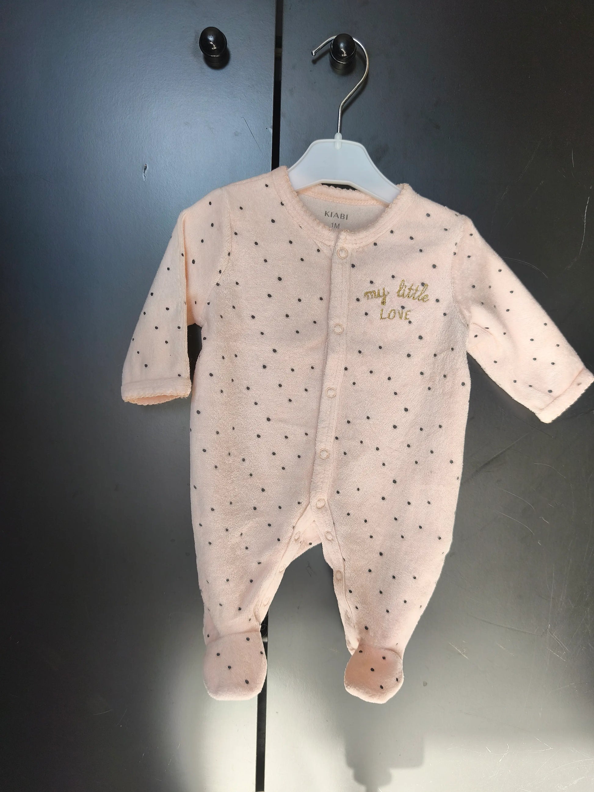 Grenouillère Rose à Pois Noirs – “My Little Love” – Kiabi – 1 Mois ref 191