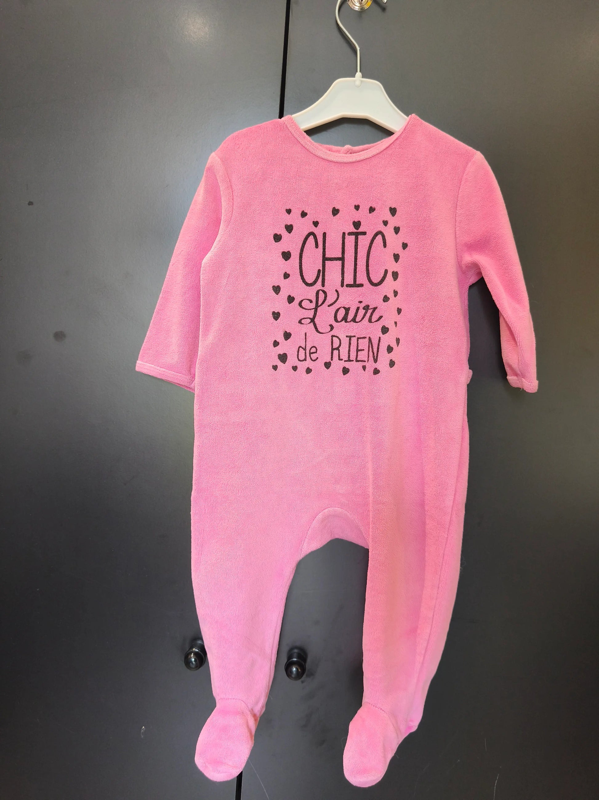 Grenouillère Rose Velours "Chic l’air de rien" – Petits Cœurs – 12 Mois ref 318