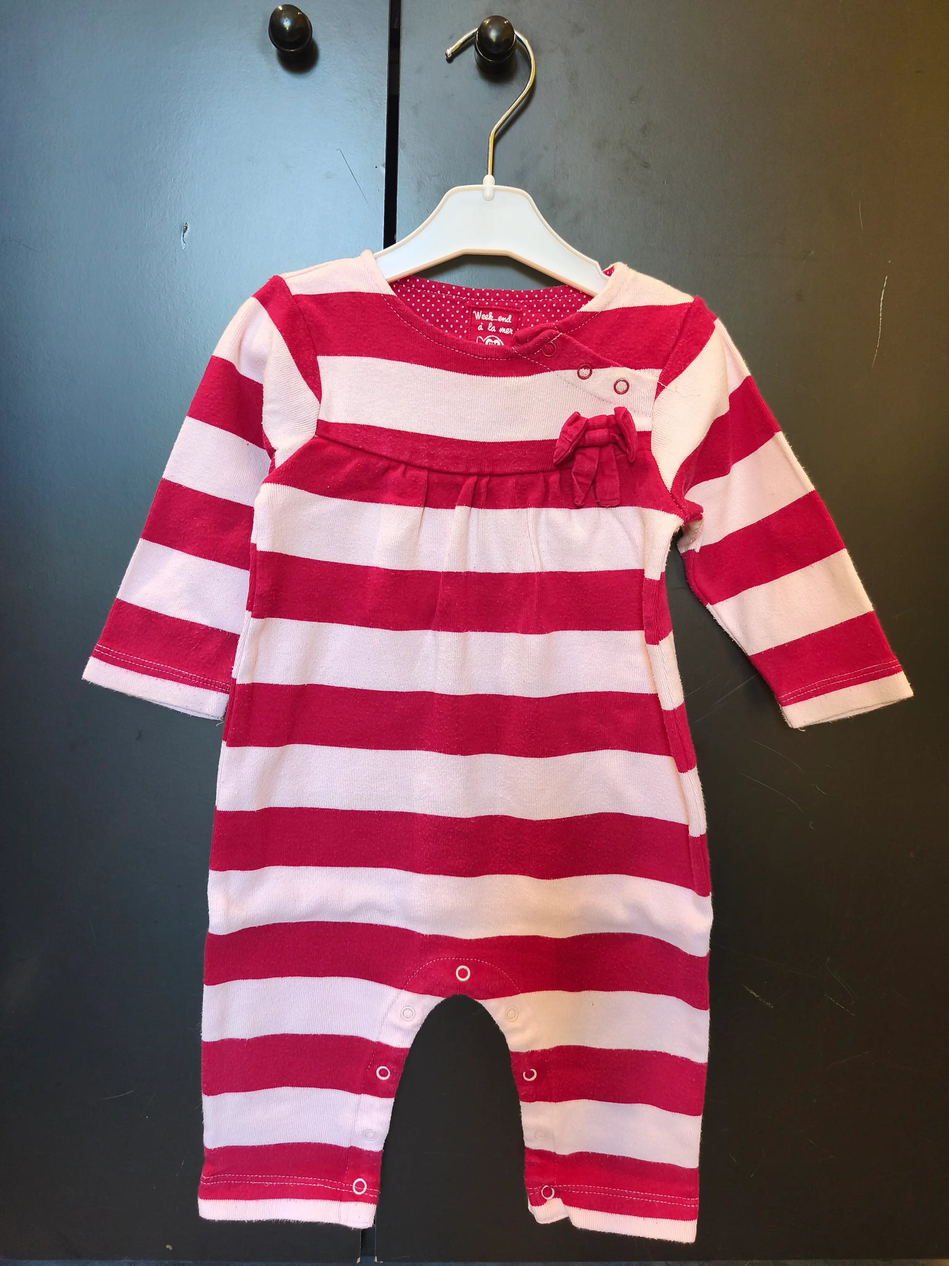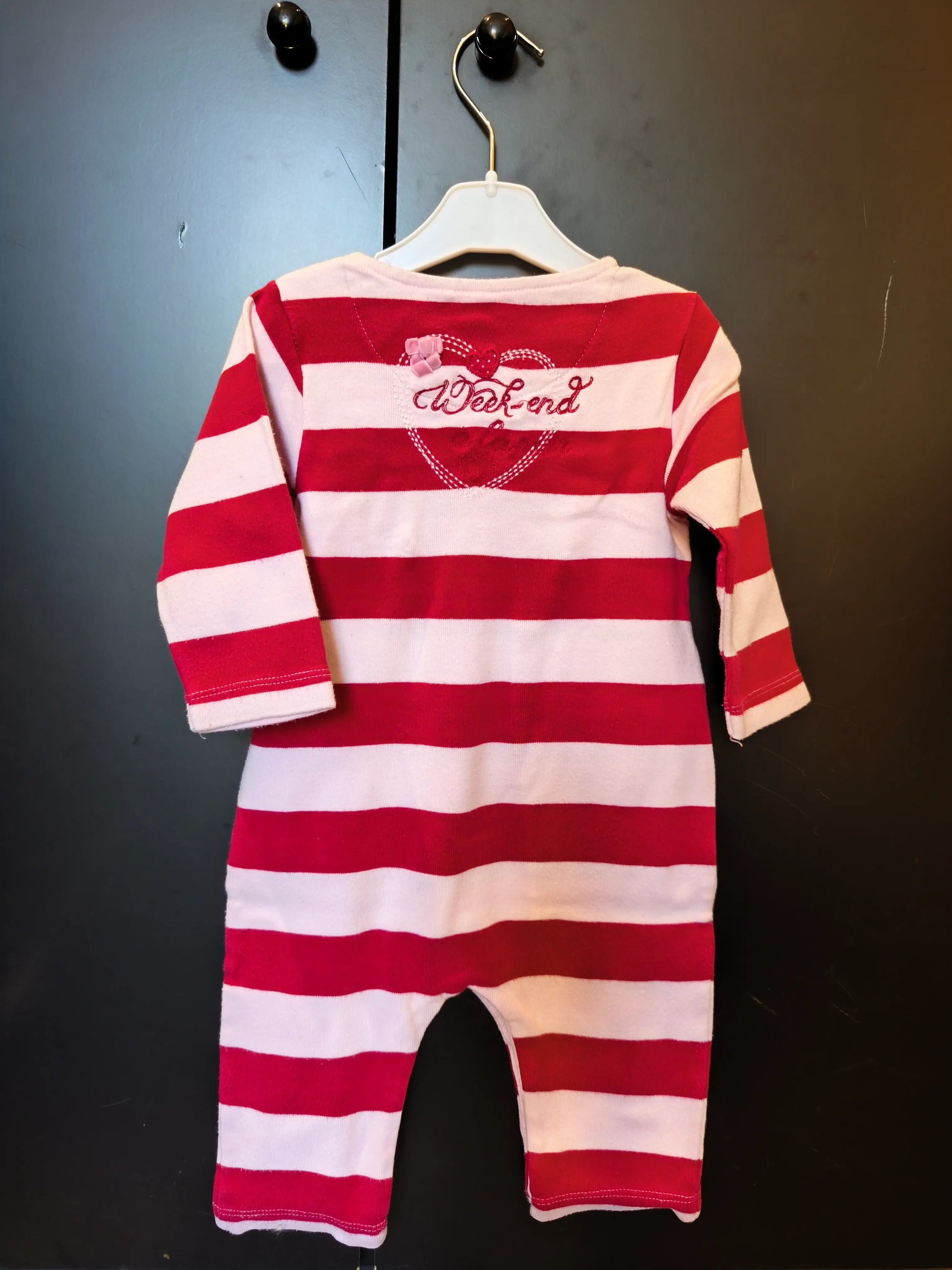 Grenouillère velours rayée – Rose pastel & rouge – 9 mois ref 252