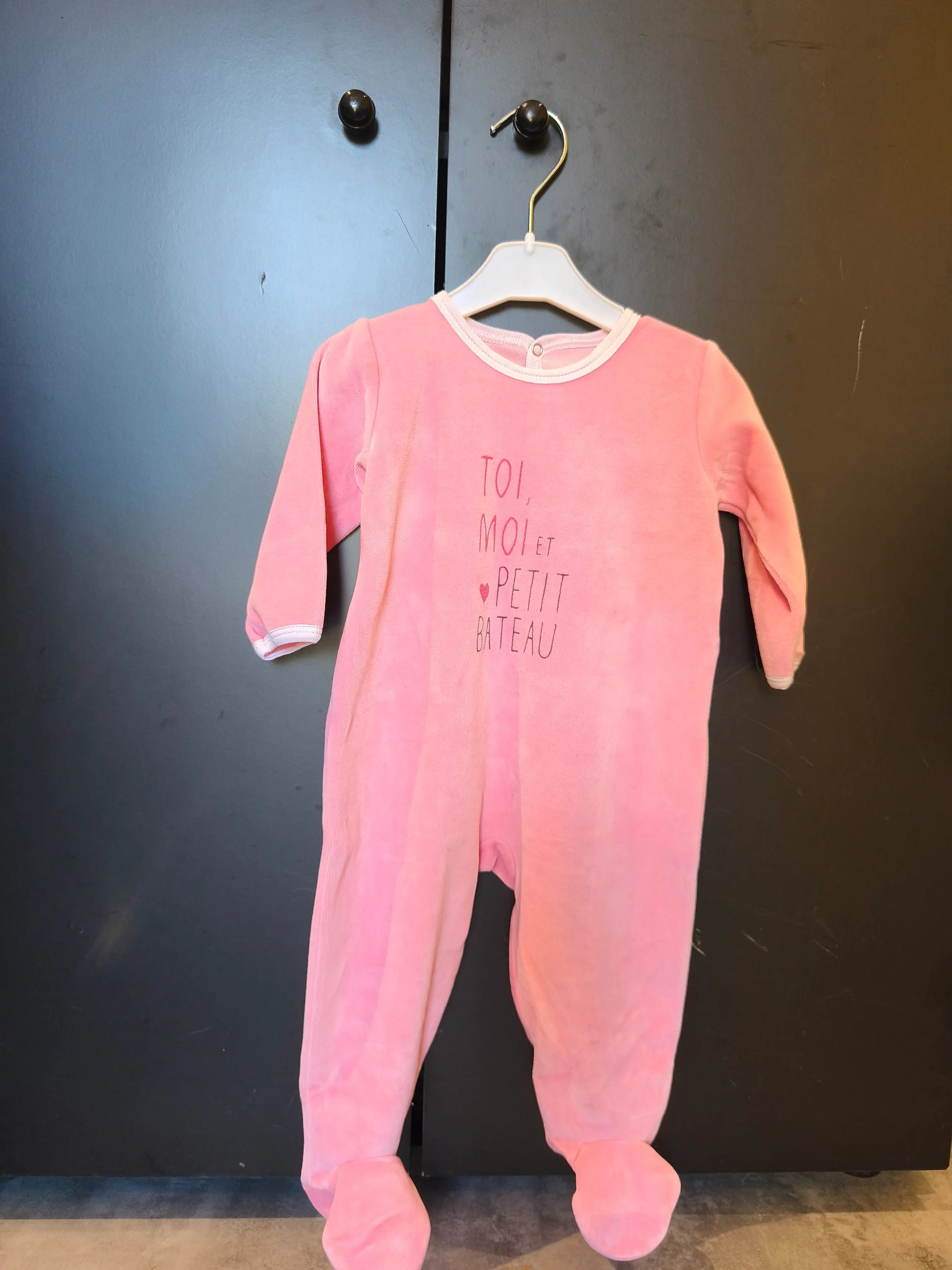 Grenouillère velours “Toi Moi” – Rose – 9 mois ref 253