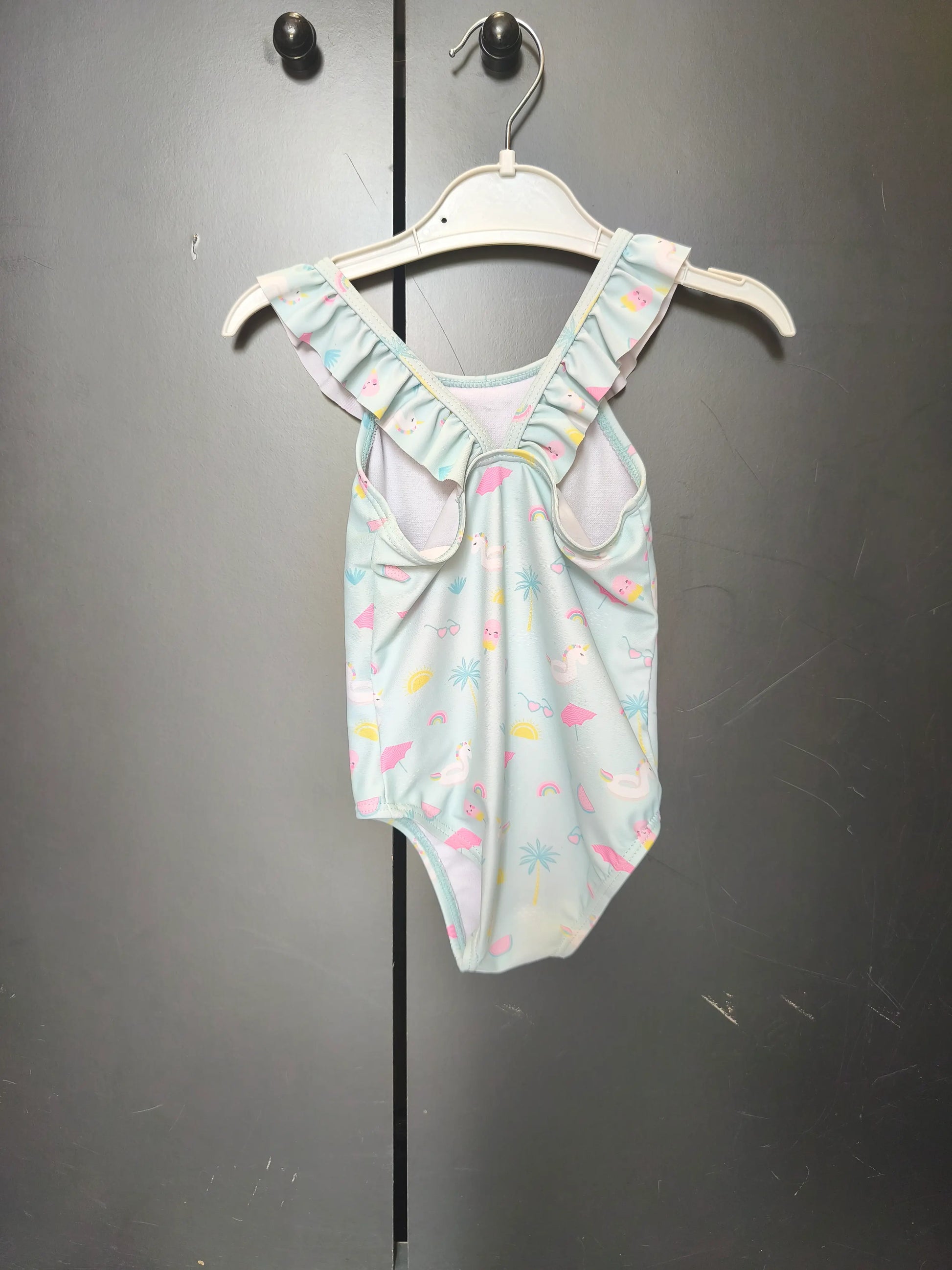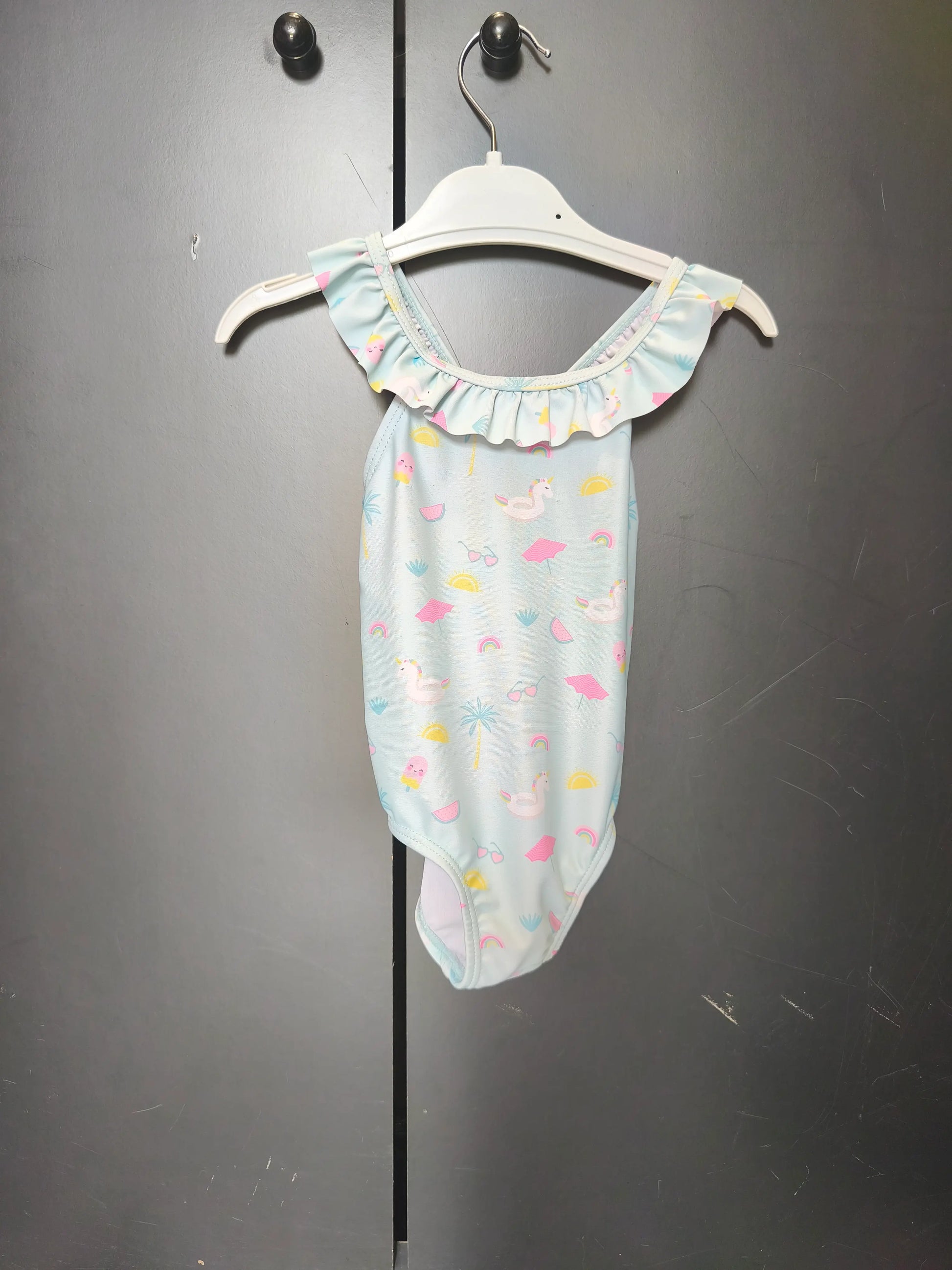 Maillot de bain bleu clair Mots d’Enfants 9 mois – Licorne et volants ref 104