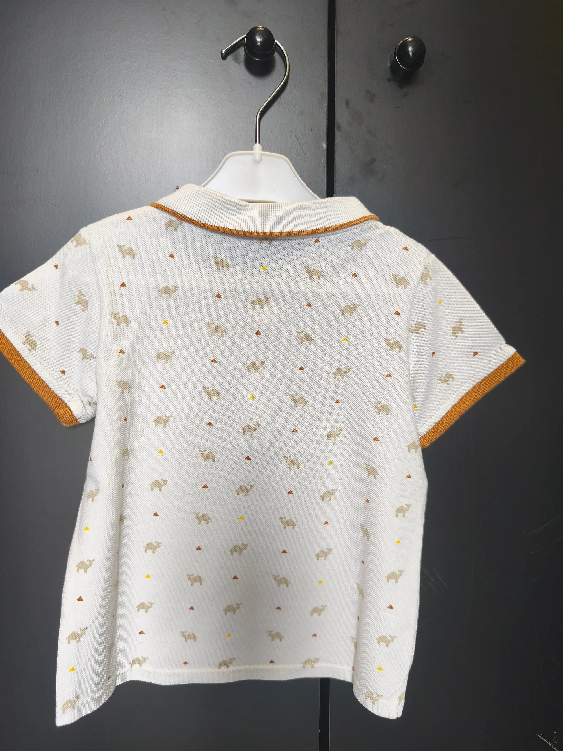 Polo Okaïdi 18 mois - Blanc & Camel à motif animal ref 01