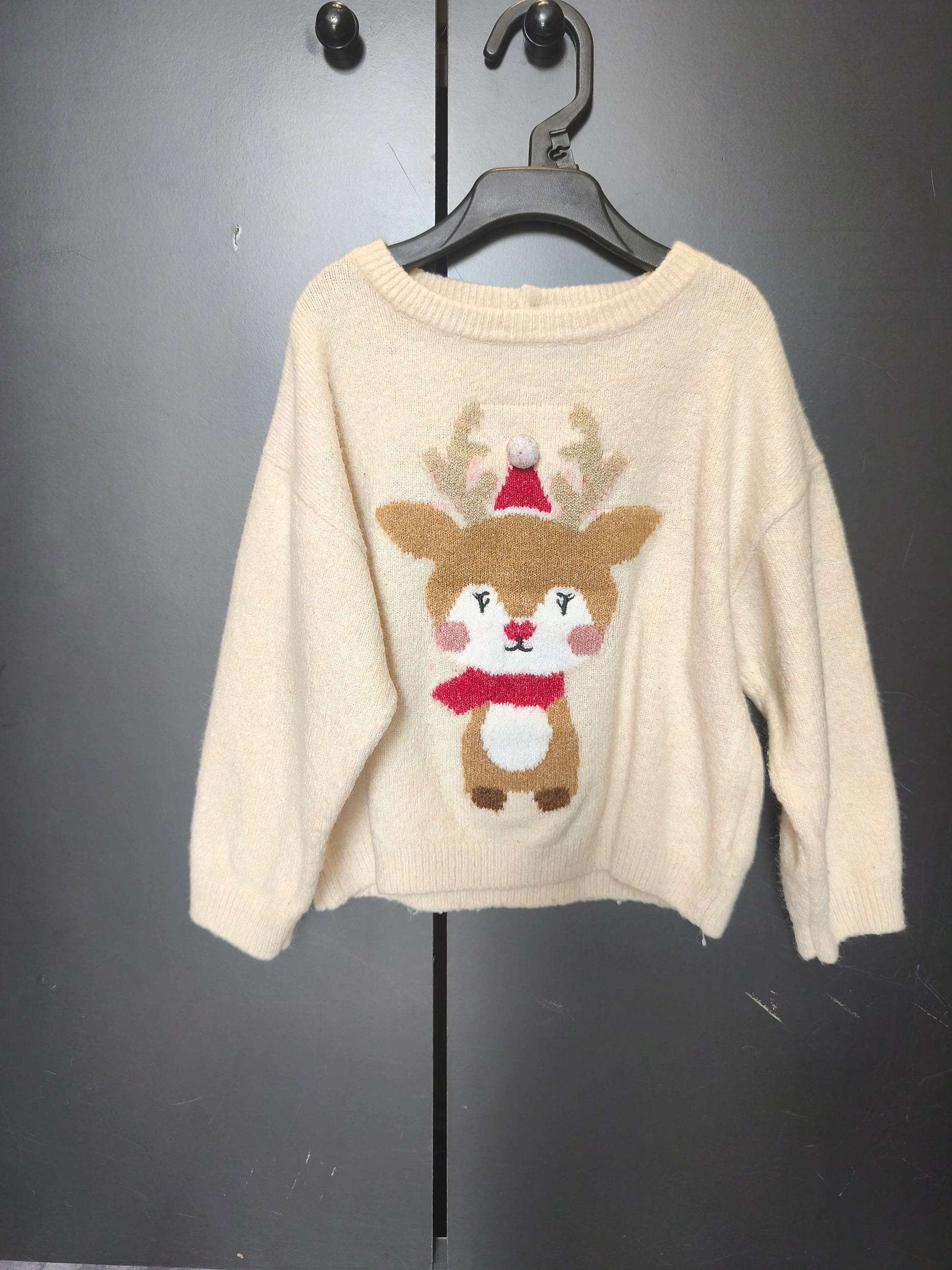 Pull de Noël Vertbaudet 24 mois – Crème clair, broderie cerf & pompon ref 69