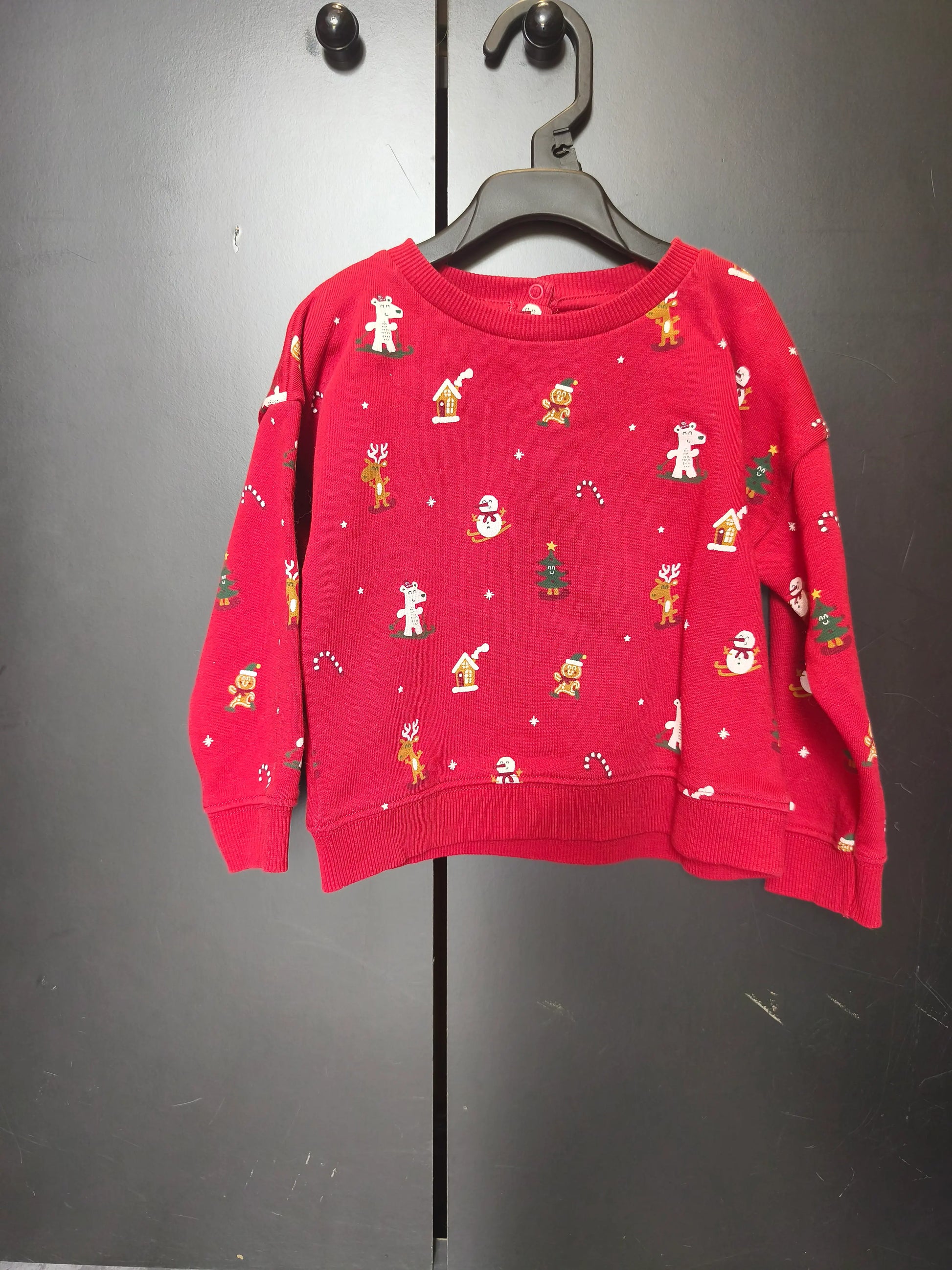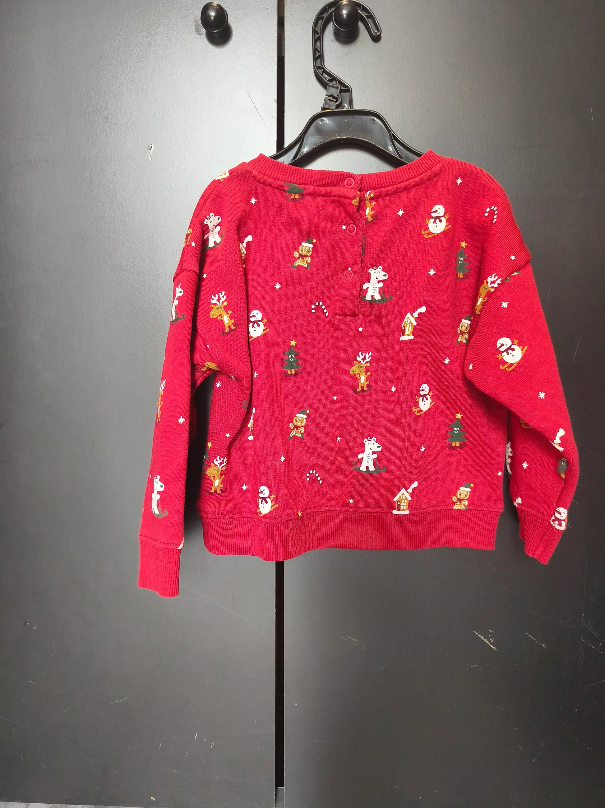 Pull de Noël Vertbaudet 24 mois – Rouge vif avec dessins festifs & boutons au dos ref 68