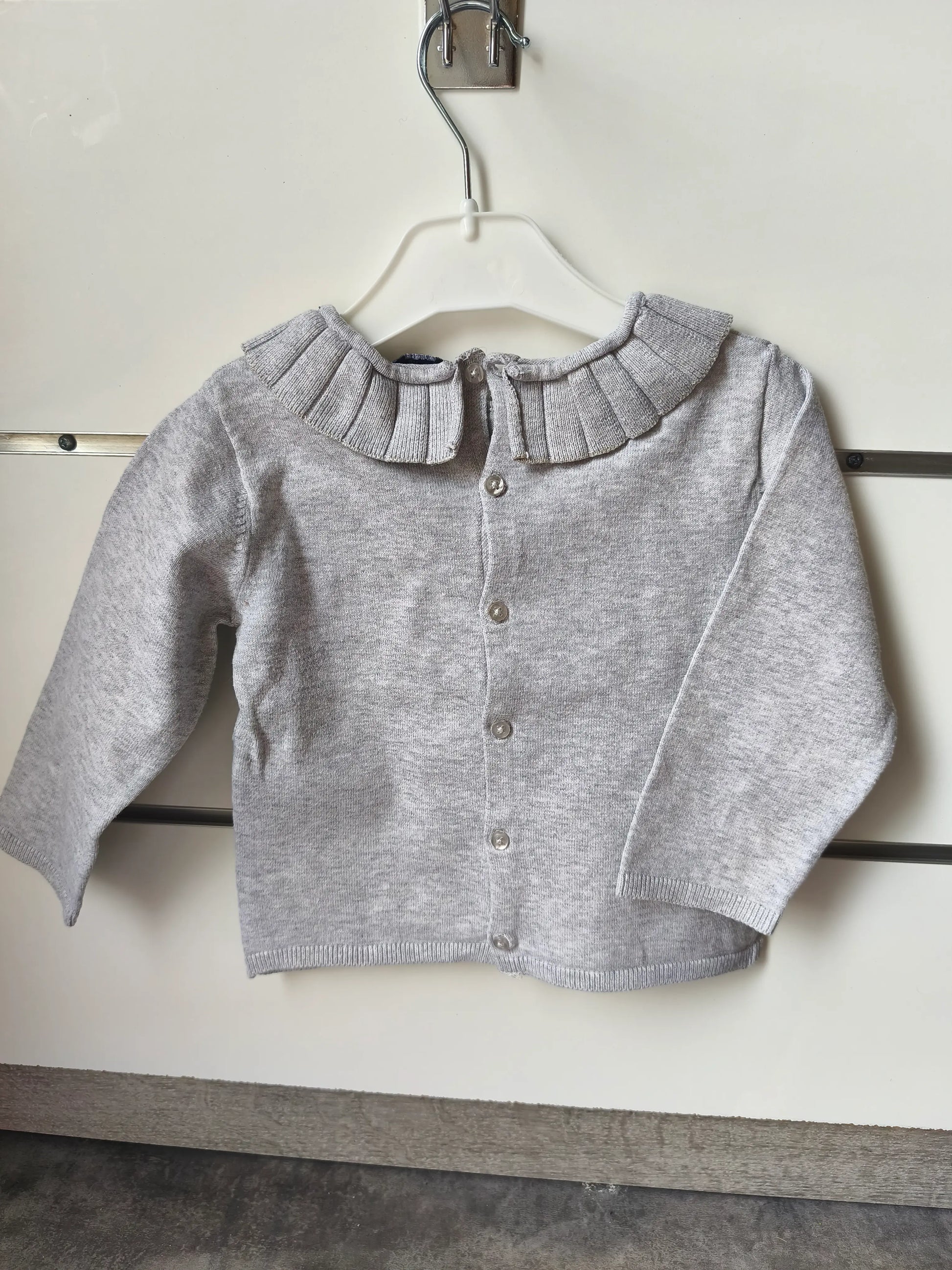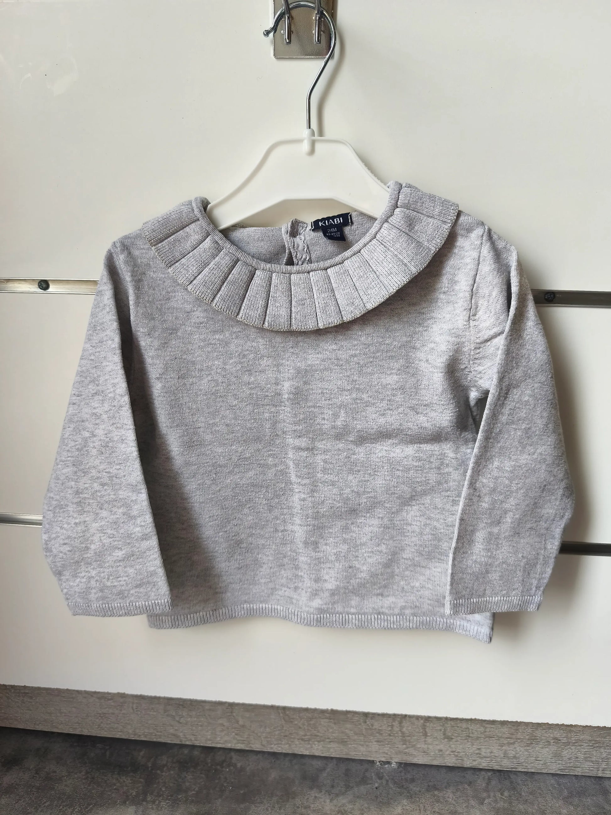Pull Gris Uni Manches Longues – Volant au Col – Kiabi – 24 mois