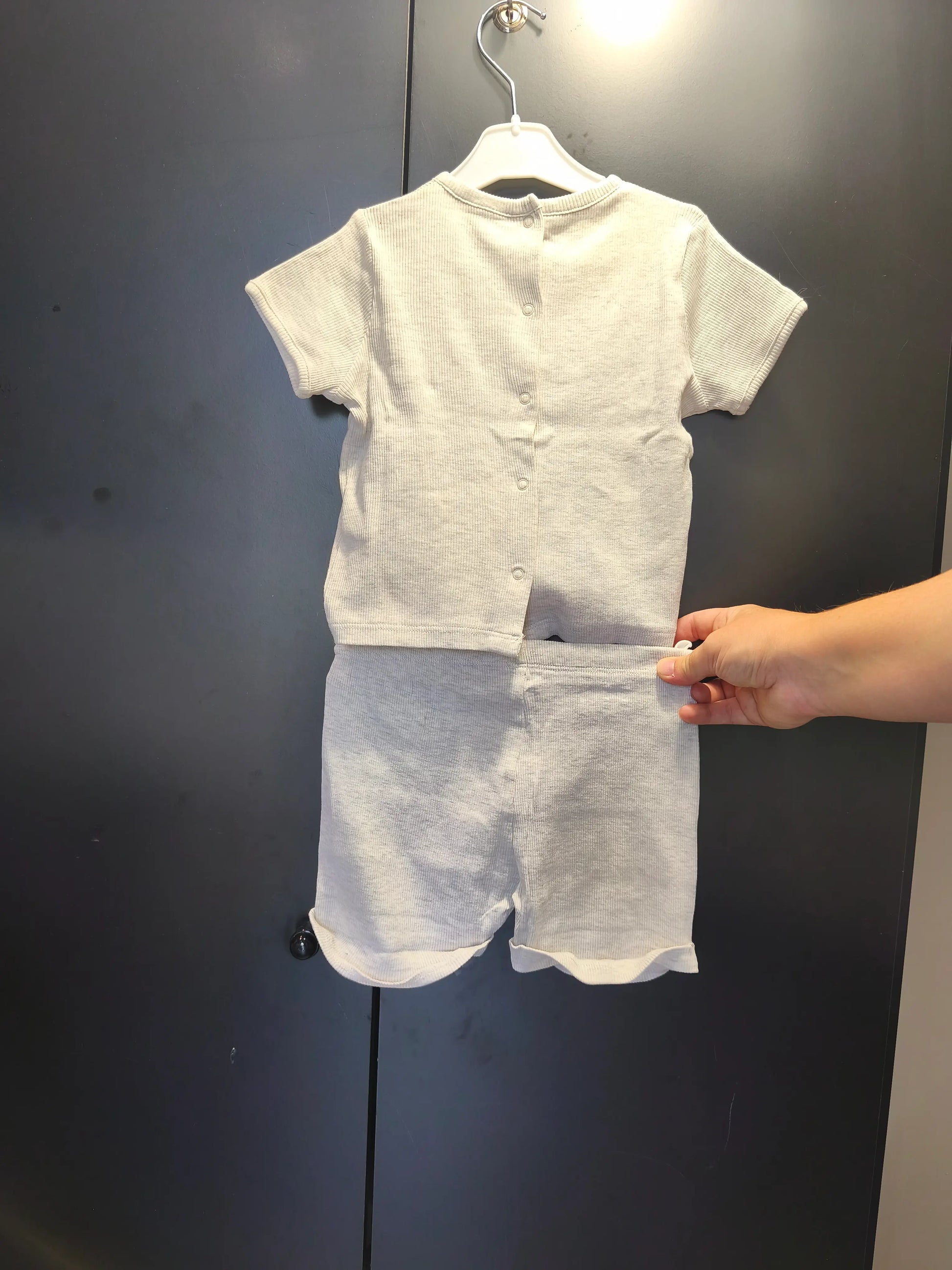 Le short simple en coton côtelé complète parfaitement l’ensemble, offrant liberté de mouvement et confort durant le sommeil ou les jeux à la maison.
