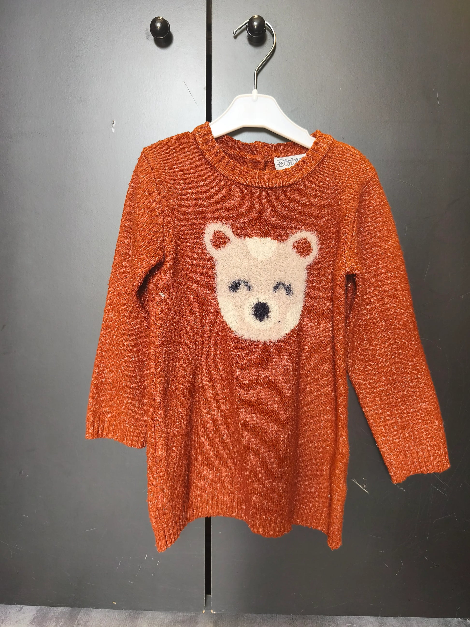 Robe Dirkje 12 mois - Terracotta, manches longues & dessin tête d’ours ref 61
