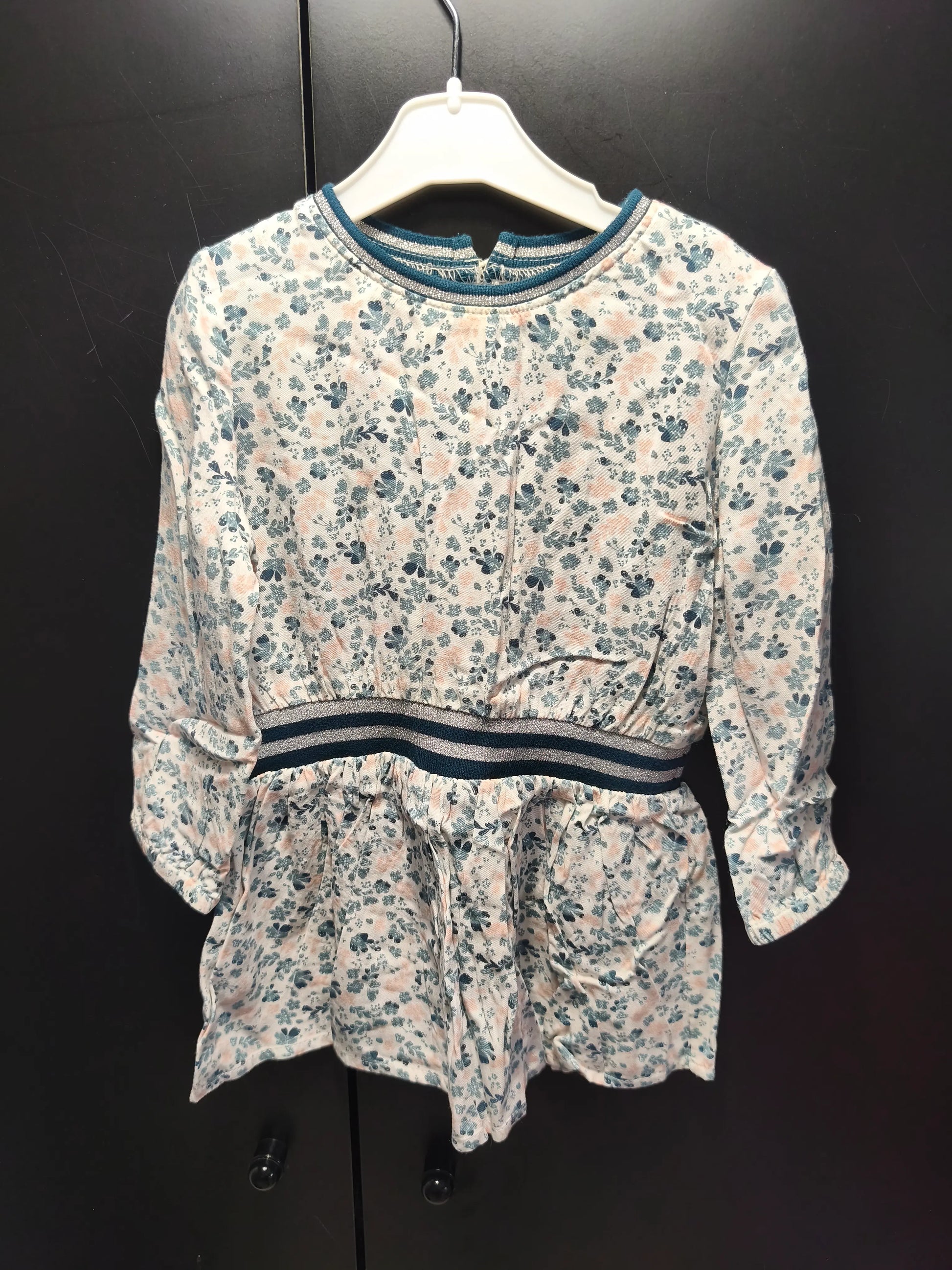 Les manches longues et le col rond assurent confort et liberté de mouvement, et les boutons au dos facilitent l’habillage. Parfaite pour une enfant de 3 ans.