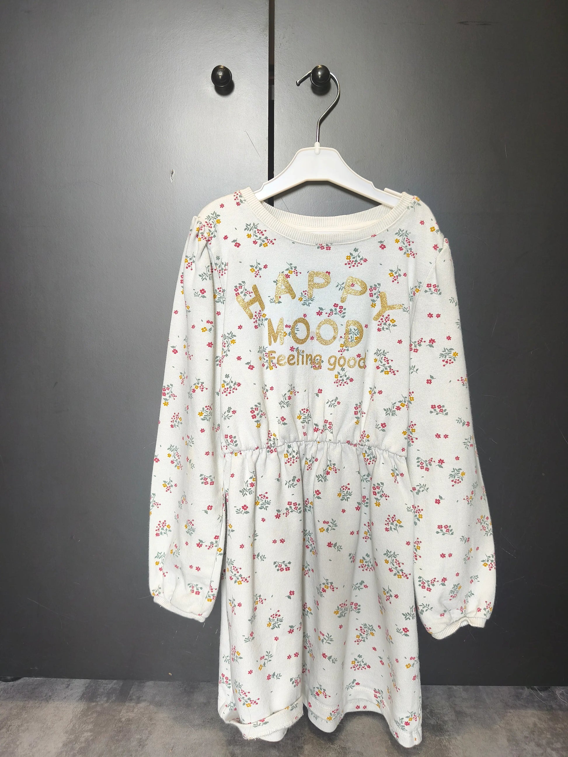 Robe Kiabi 8 ans - Blanche à fleurs, manches longues & message brodé ref 64