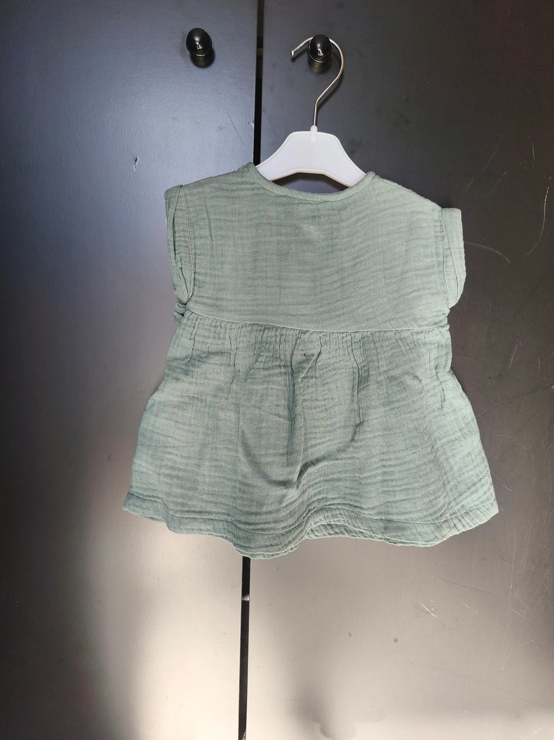 Robe Verte en Gaze de Coton – Noeud Décoratif – Verbaudet – 3 Mois ref 198