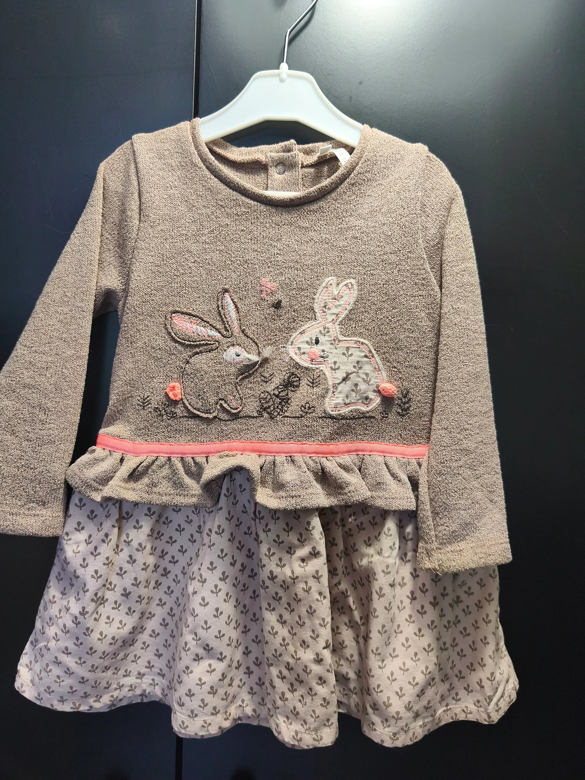 Offrez douceur et charme à votre petite 🌸 – craquez pour cette robe lapins Orchestra 18 mois !
