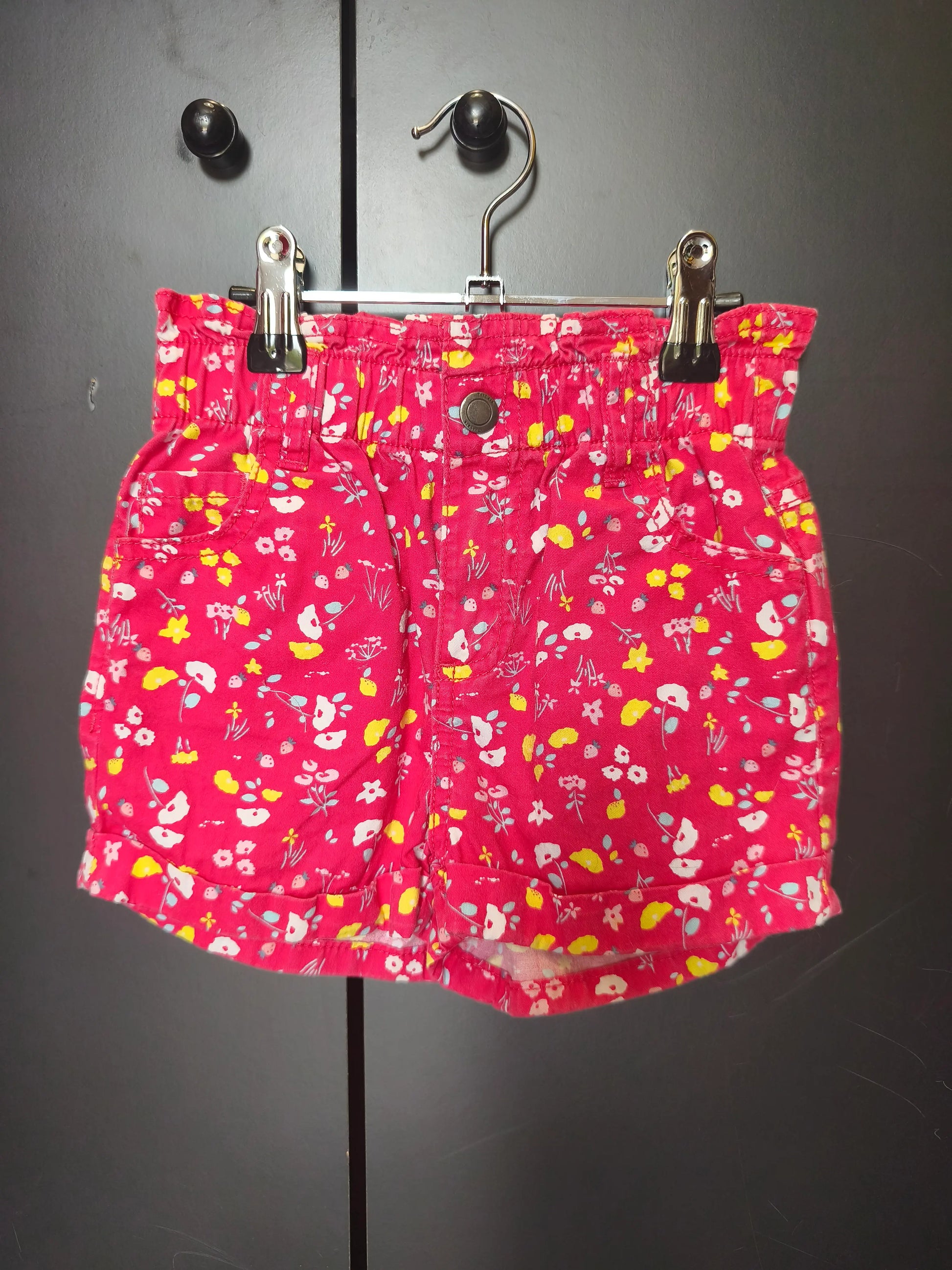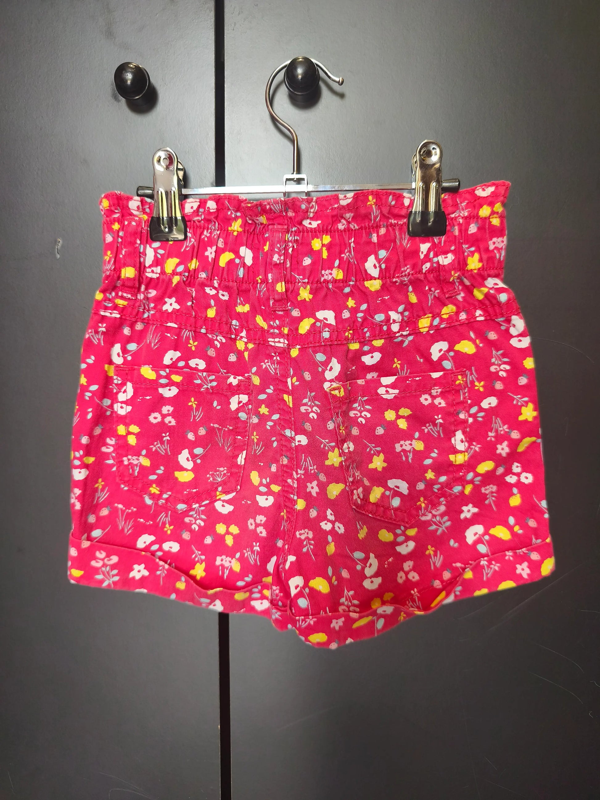 Short rouge fleurs blanches et jaunes 4 ans Tissaia, poches, 100% coton ref 97