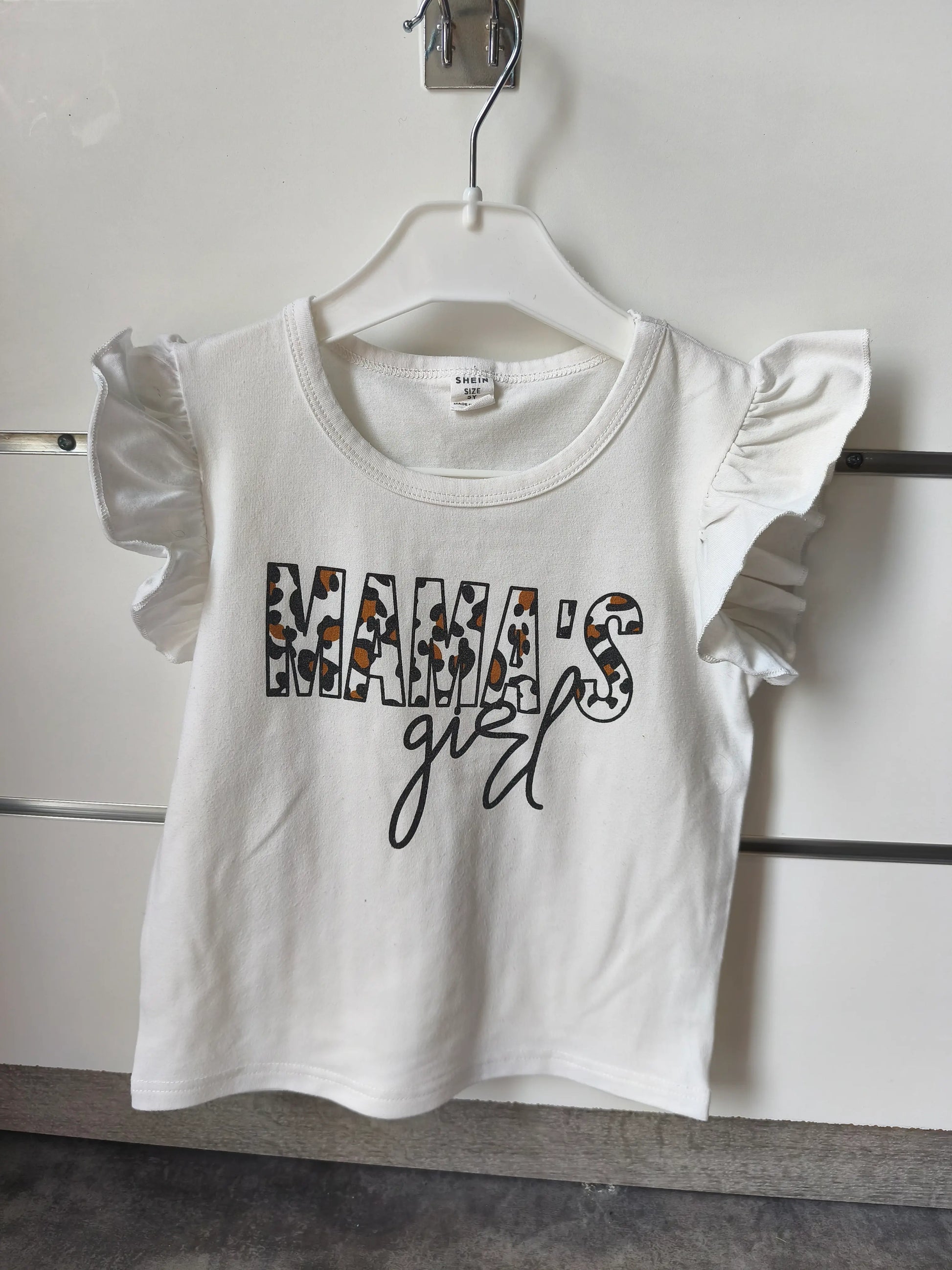 T-shirt Blanc Manches Courtes “Mama’s” – Volants Léopard – Shein – 5 ans