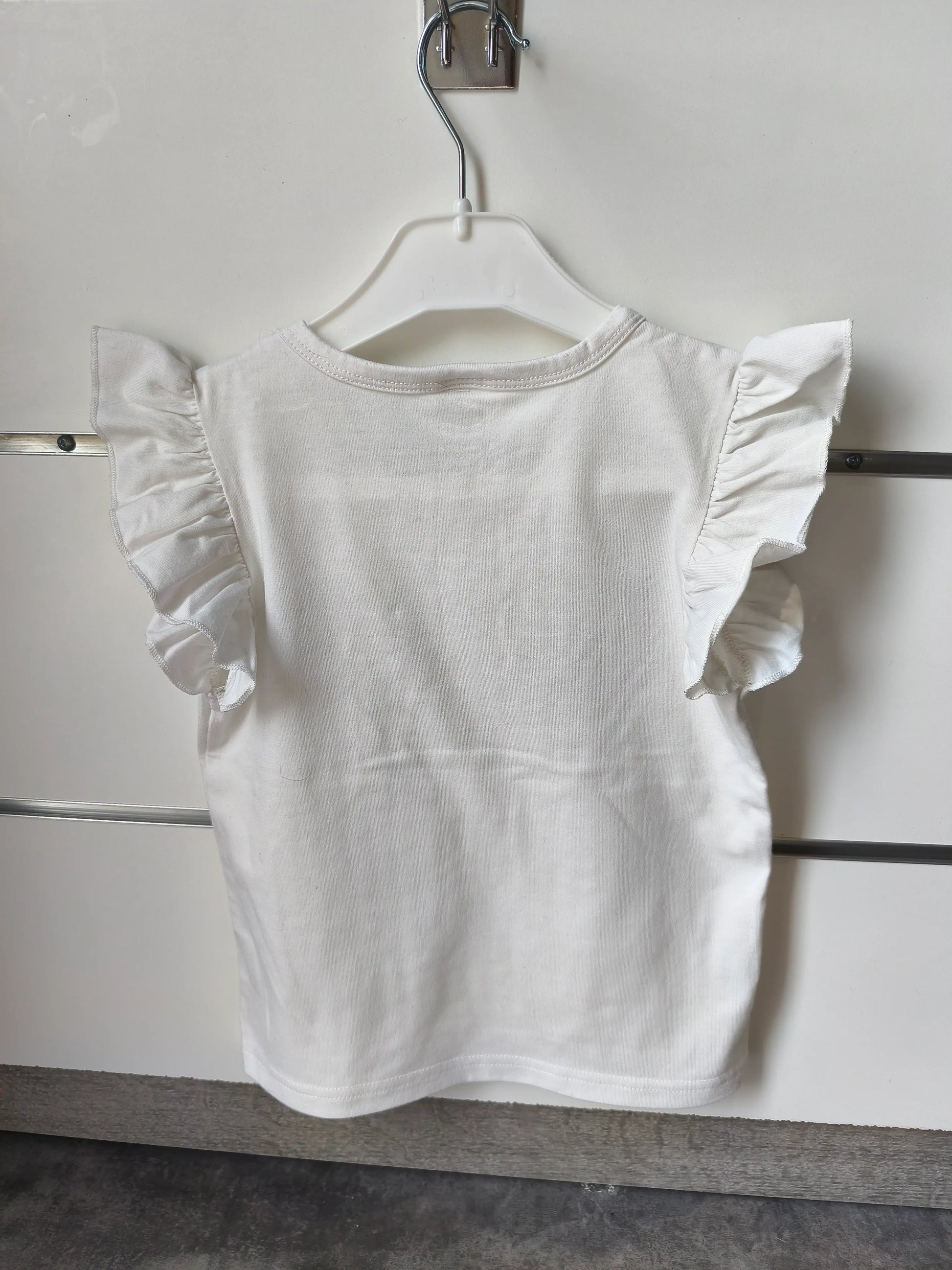 Un t-shirt tendance et pratique, qui allie confort et style. Les volants aux manches et l’inscription léopard apportent une touche originale et féminine au look de votre enfant 🐆✨