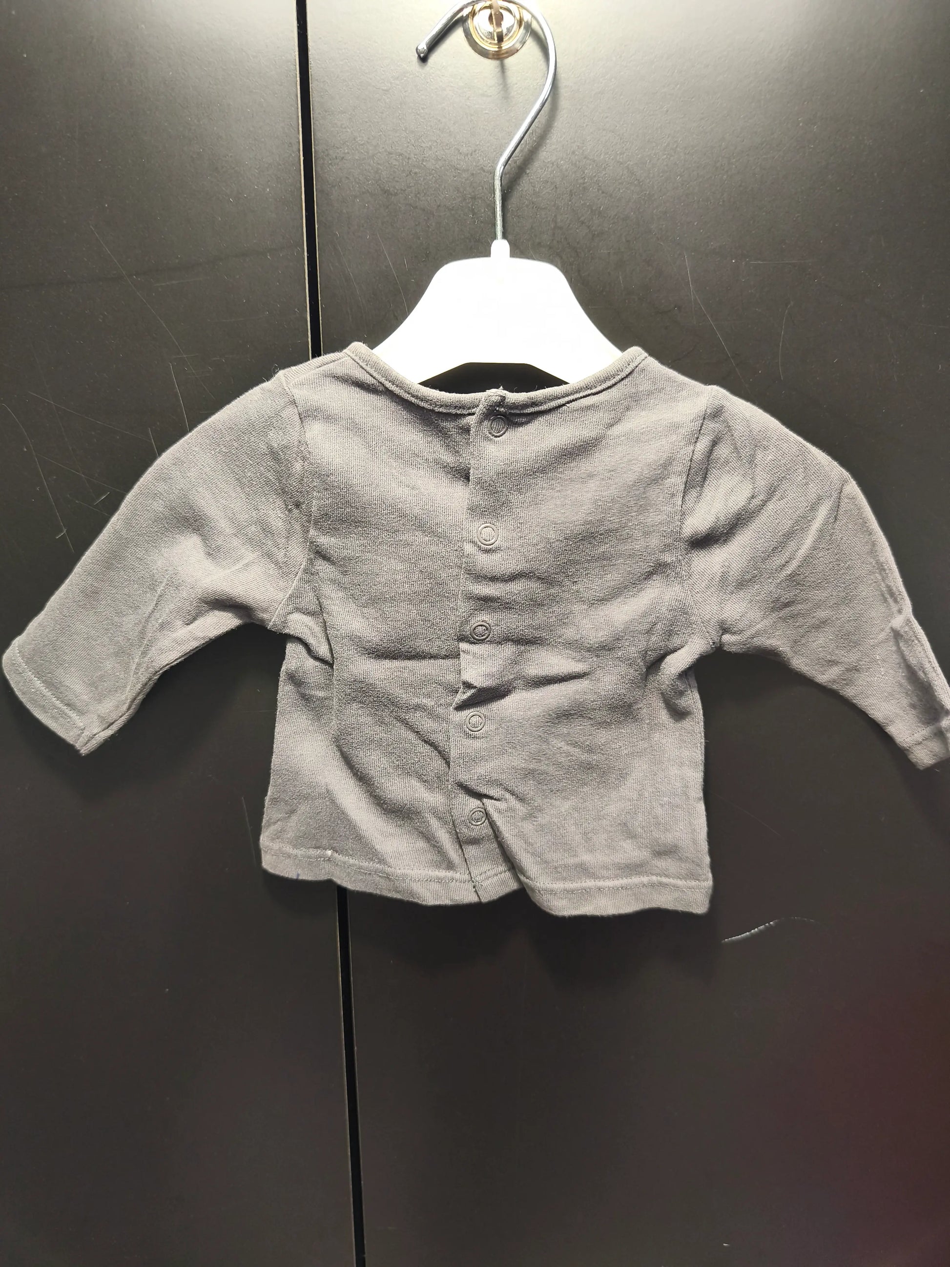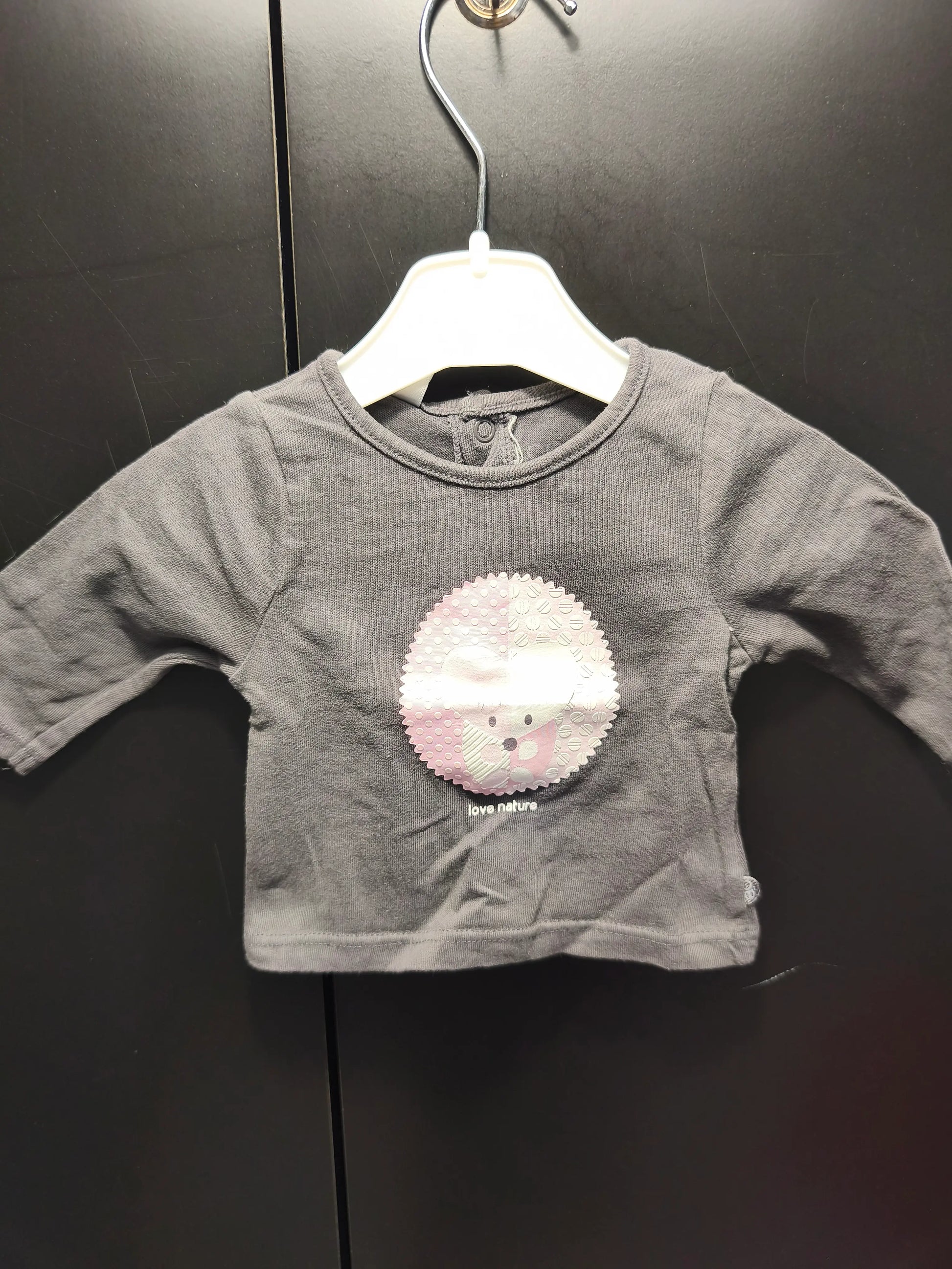 T-Shirt Gris Foncé Obaïbi – Hérisson Rose “Love Nature”, Manches Longues – 1 mois