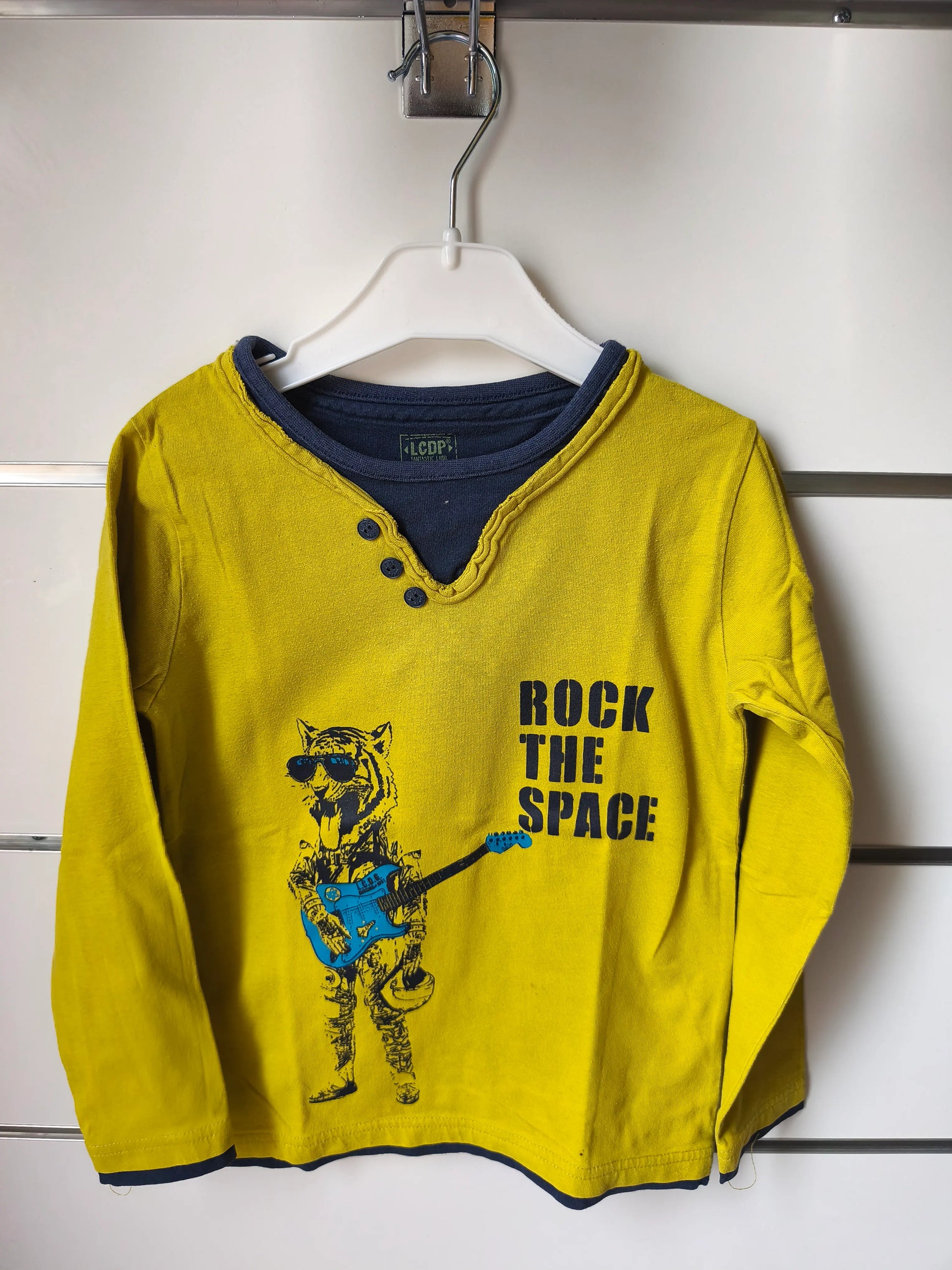 T-shirt Jaune Manches Longues Effet Double “Rock the Space” – 6 ans