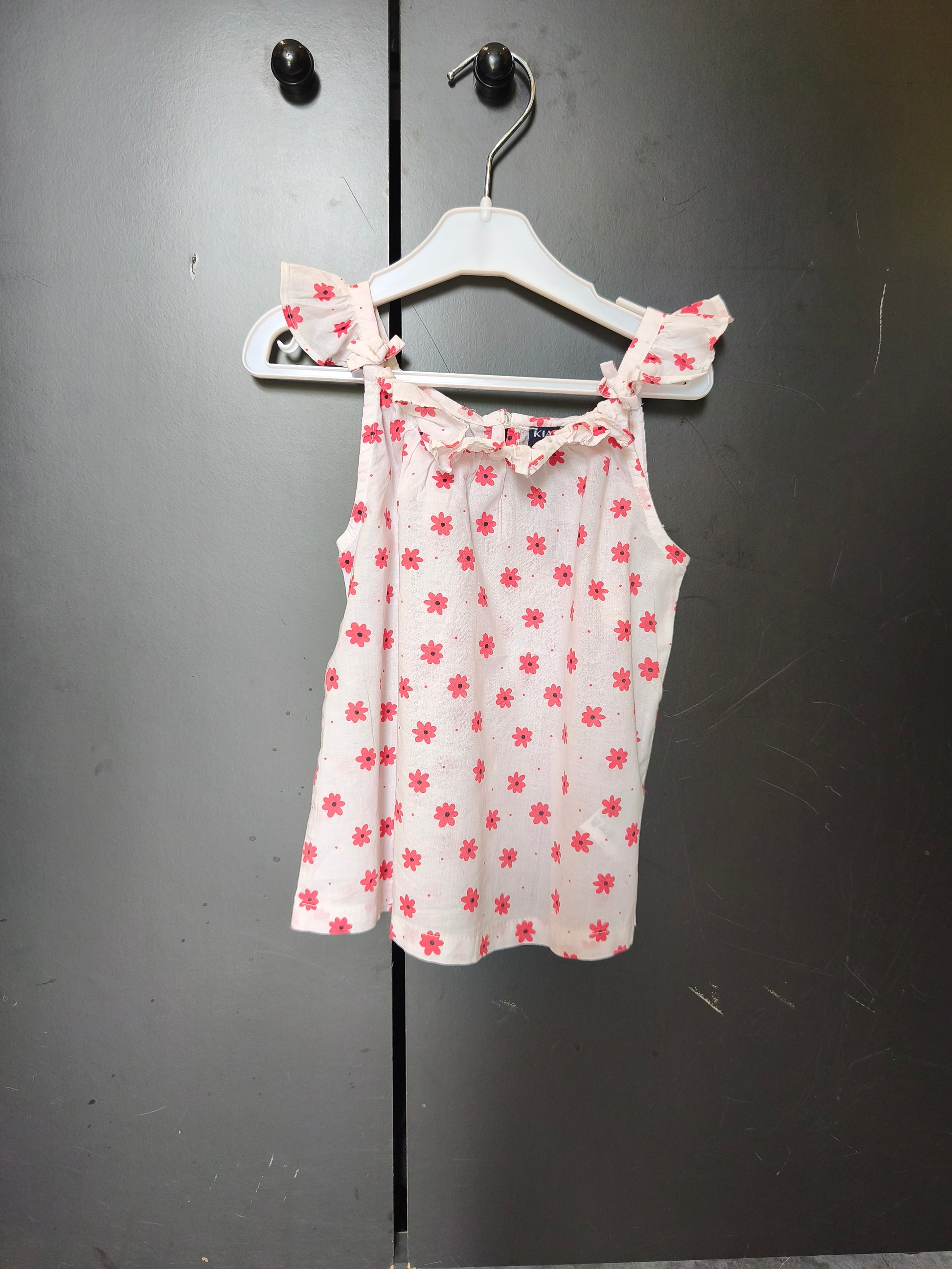 T-shirt manches courtes Kiabi 24 mois – blanc fleur rouge 🌸🤍 ref 139