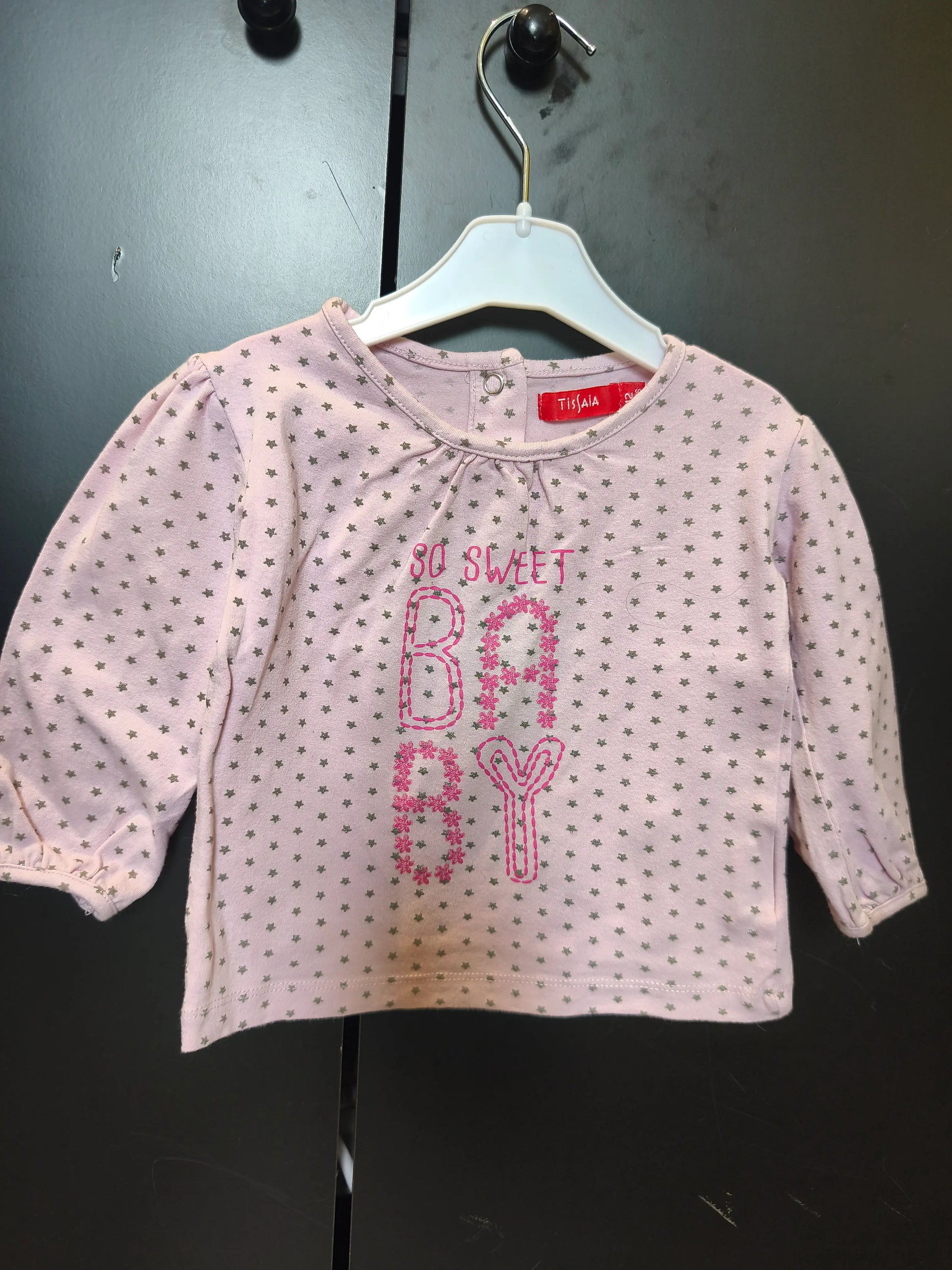 T-shirt rose à étoiles argentées et inscription "So Sweet Baby" – Tissaia – 12 mois ref 325