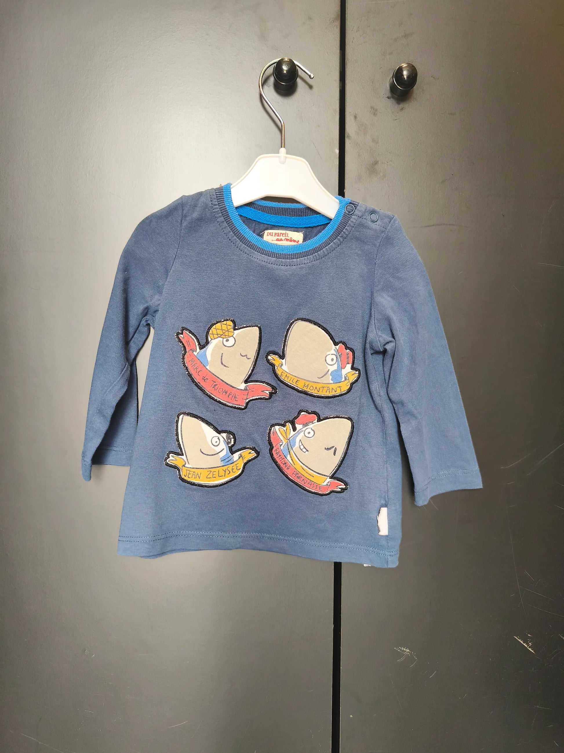 T-shirt Du Pareil au Même 12 mois – Bleu nuit avec broderie requin 🦈