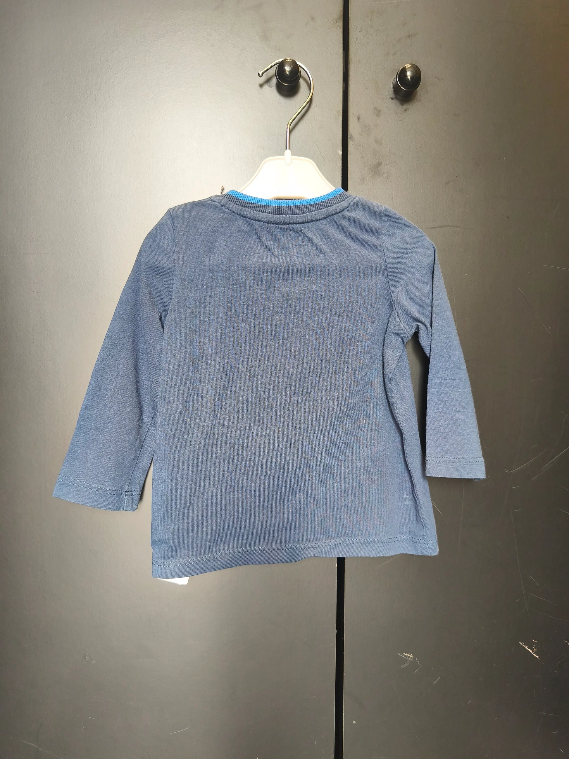 T-shirt DPAM 12 mois - Bleu nuit manches longues & broderie requin ref 20