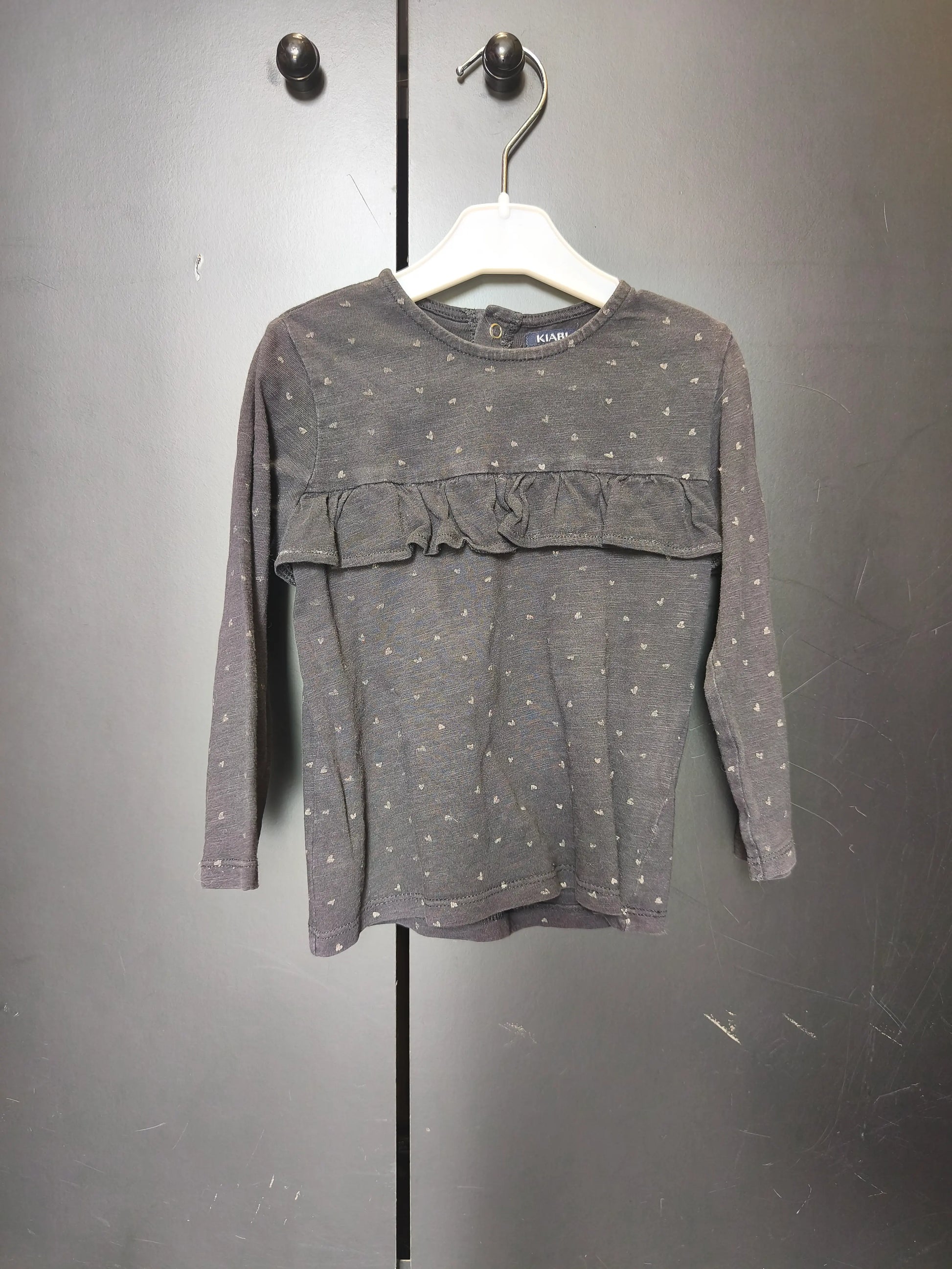 T-shirt Kiabi 24 mois - Noir, cœur argenté, volant & bouton dos ref 41