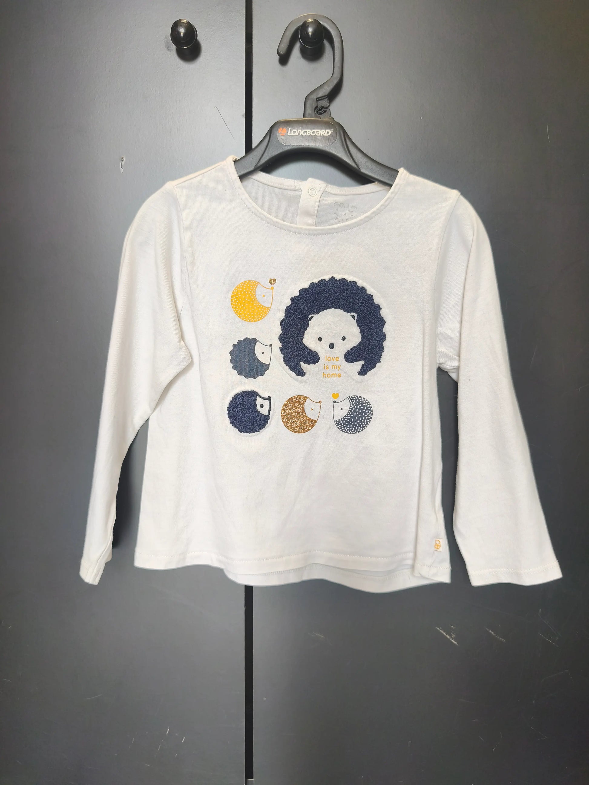 T-shirt manches longues blanc Obaïbi 24 mois – douceur et charme 🦔