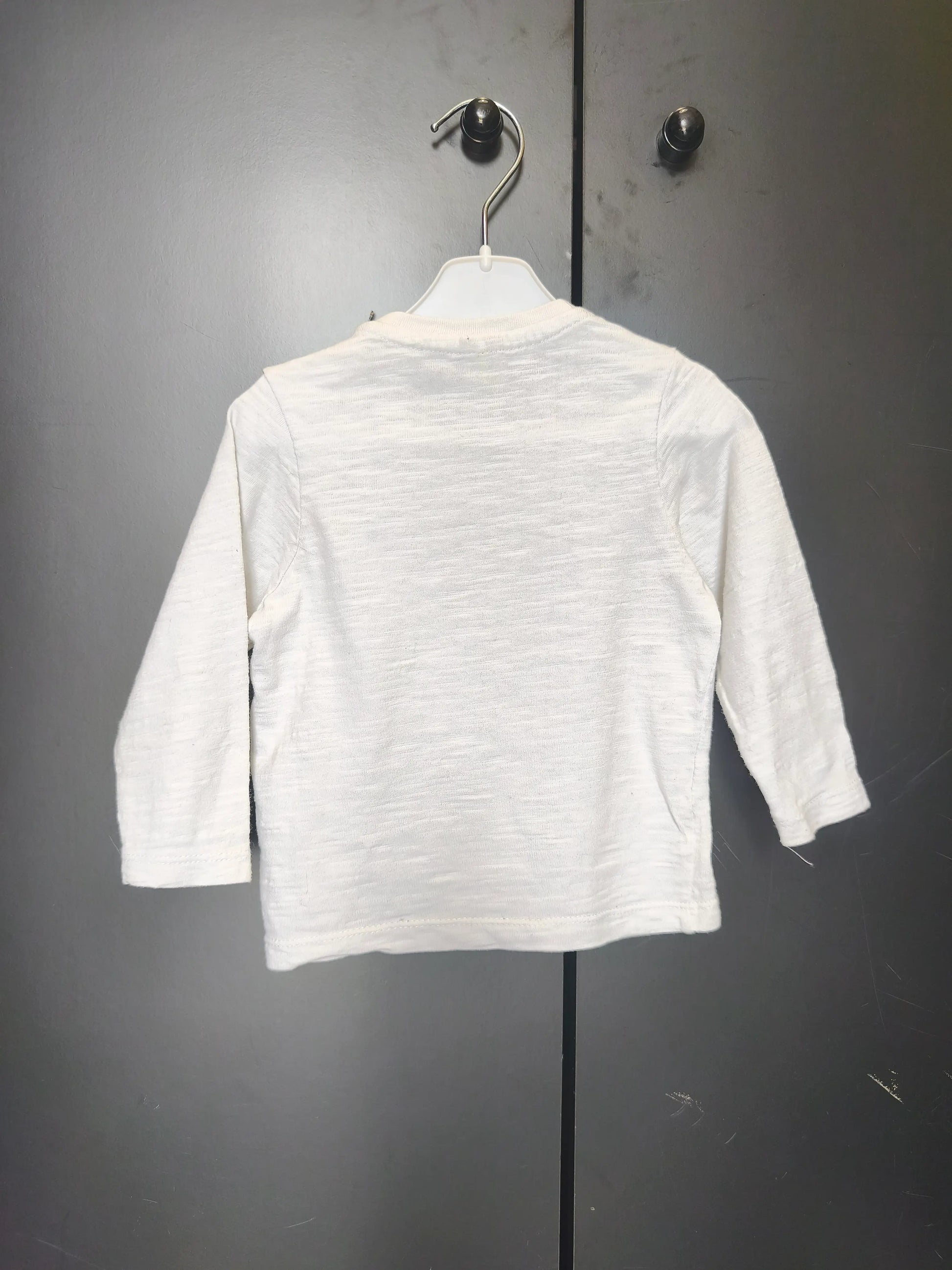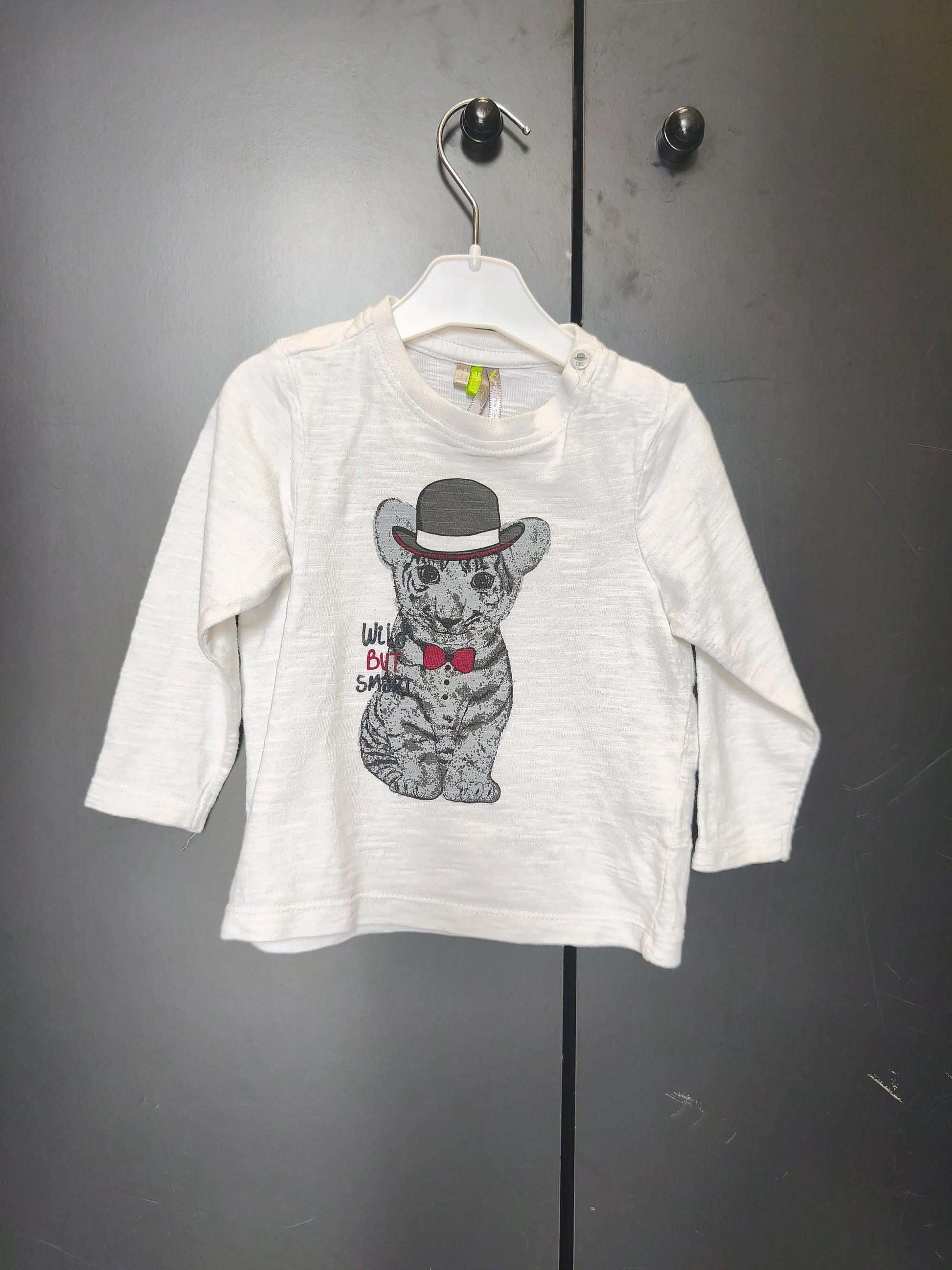 T-shirt Orchestra 12 mois - Blanc à manches longues & motif chat à chapeau ref 18