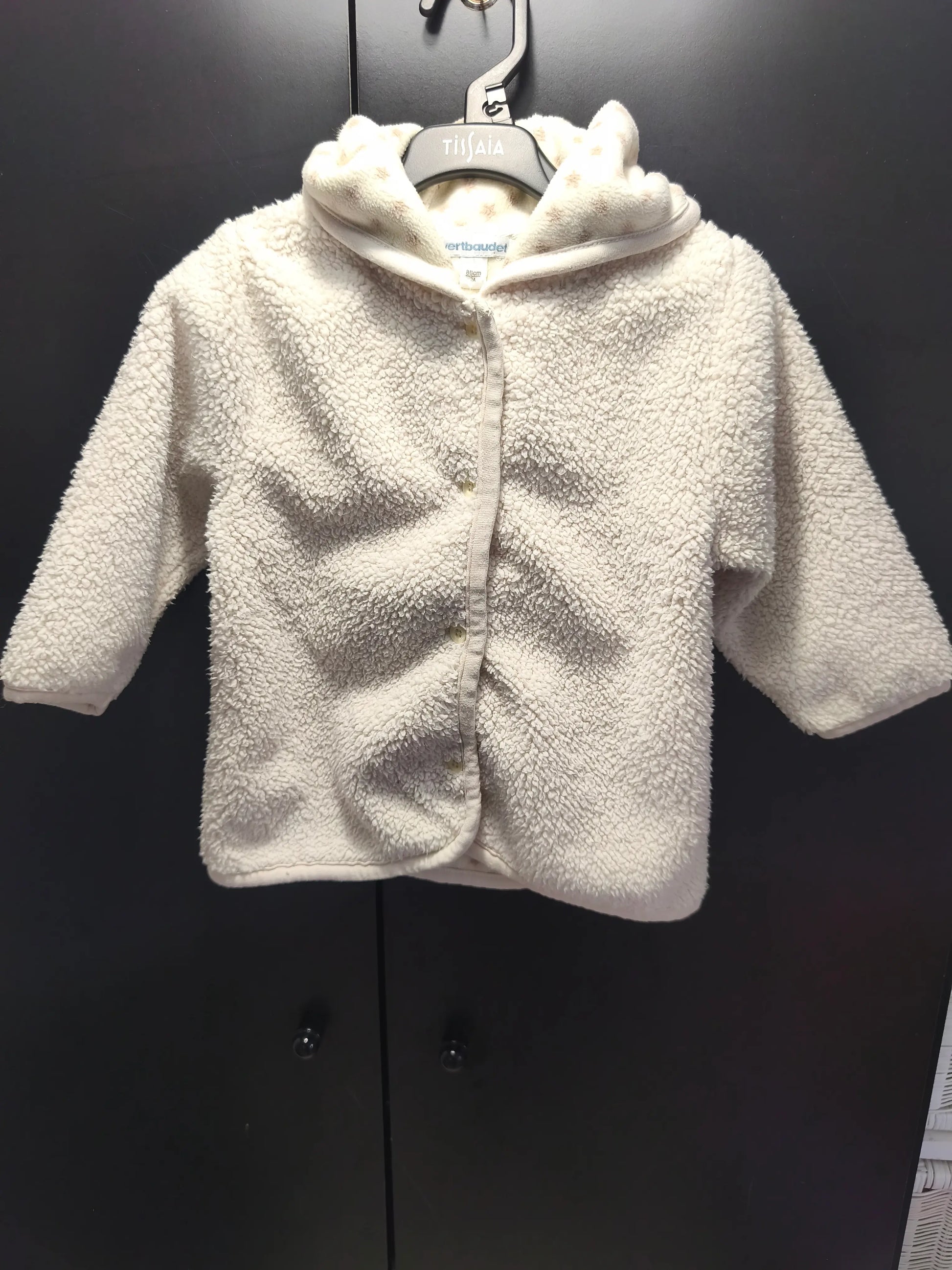Veste Verbaudet Blanche Polaire – Effet “Mouton”, Boutons Devant, Capuche Doublée Étoiles – 2 Ans